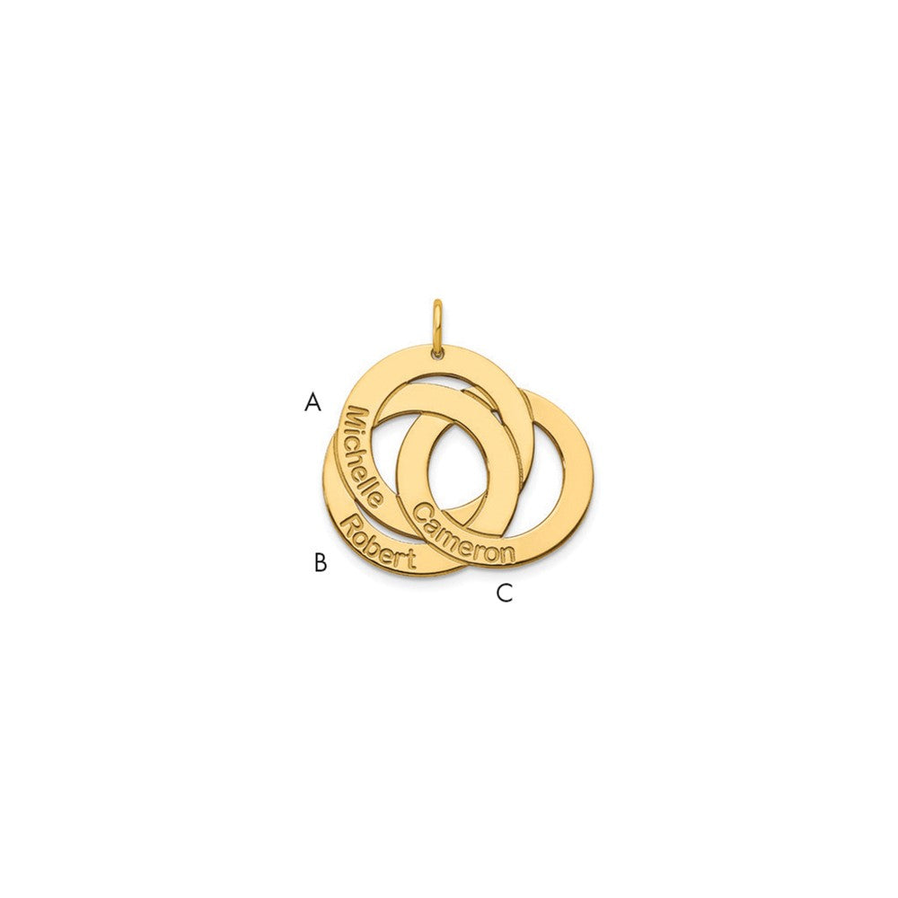 10k Yellow Gold 3 Interlocking Circles with Names Charm