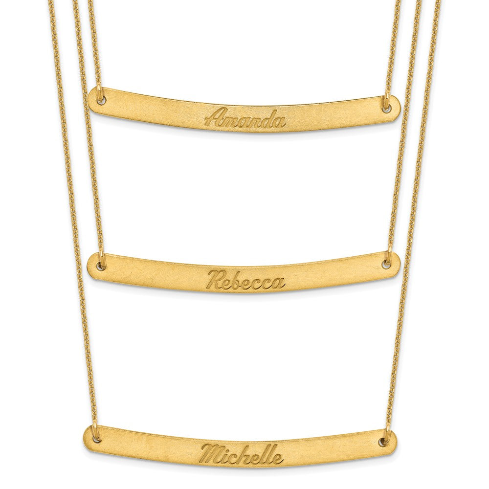 10k Yellow Gold Brushed 3 Chain 3 Bar Necklace