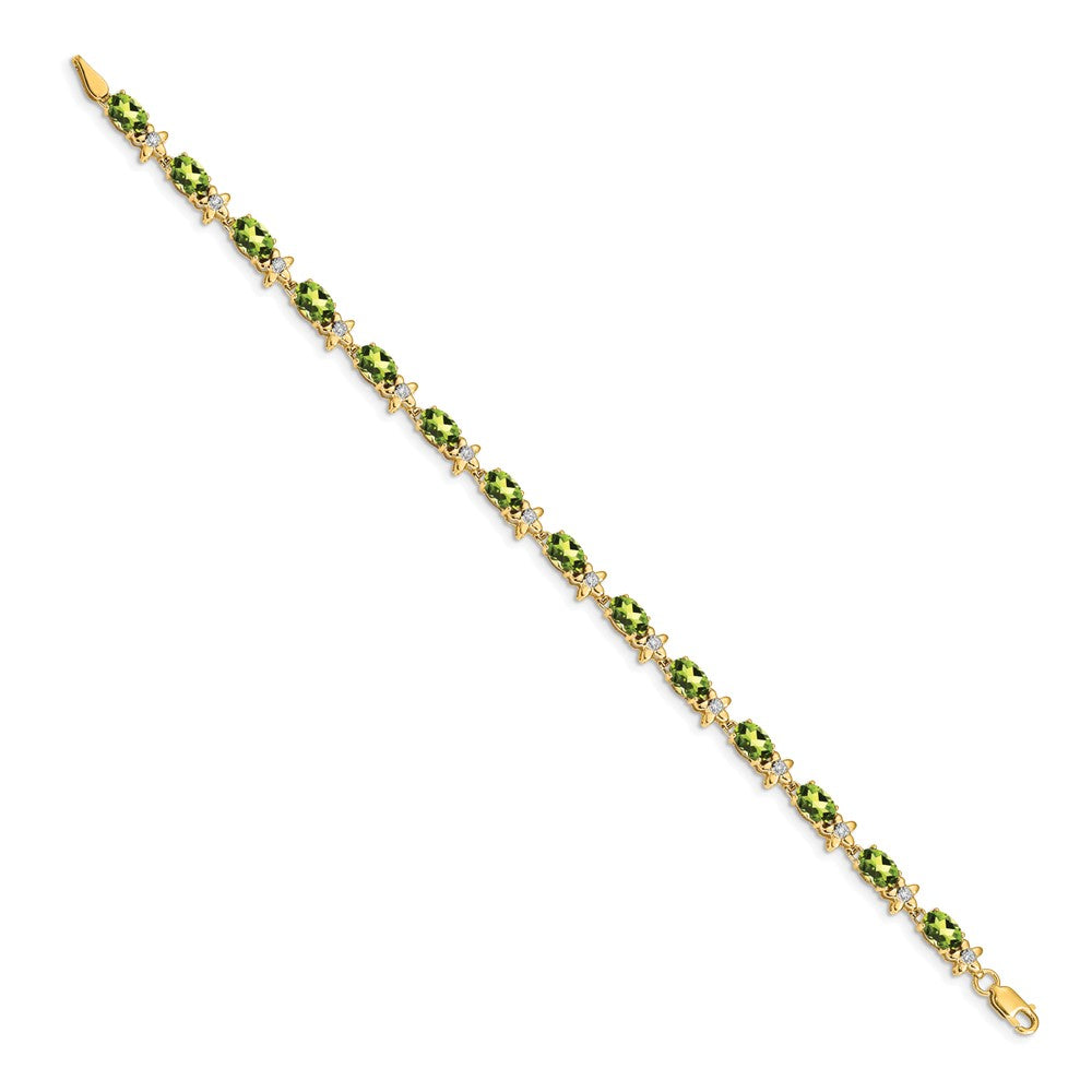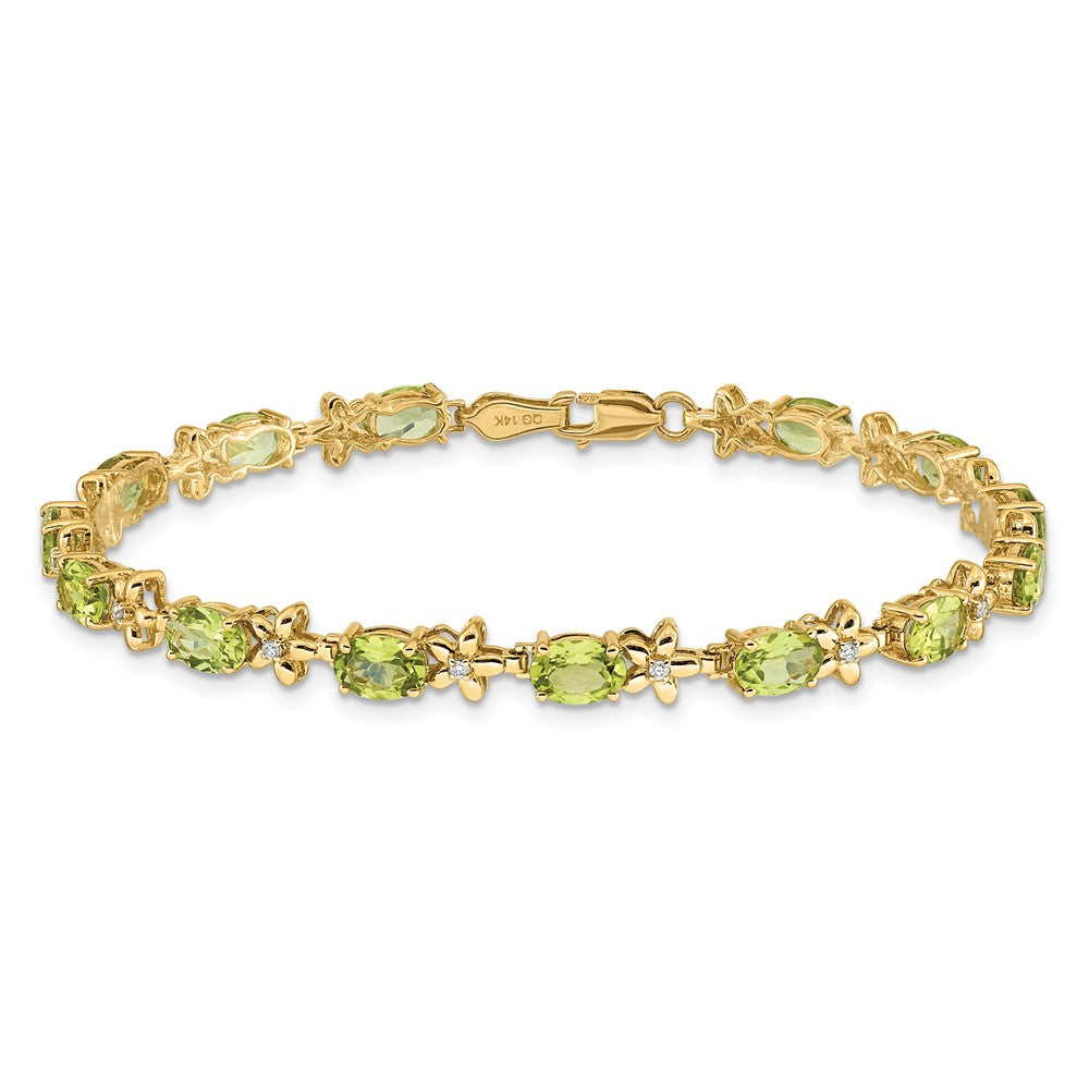 14k Complete Diamond and Oval Peridot Floral 7 inch Bracelet