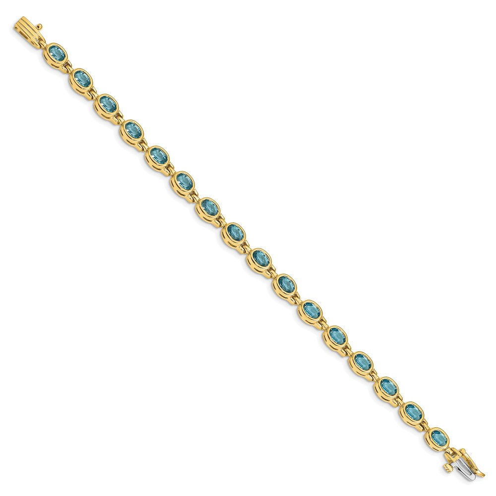14k Complete Oval Swiss Blue Topaz Bezel-set 7 inch Bracelet