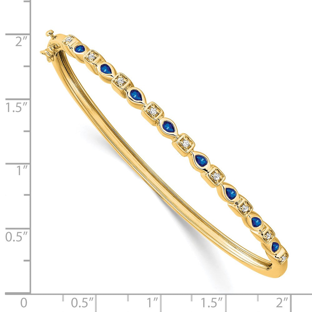 14k Complete Sapphire and 1/10 carat Diamond Hinged Bangle Bracelet
