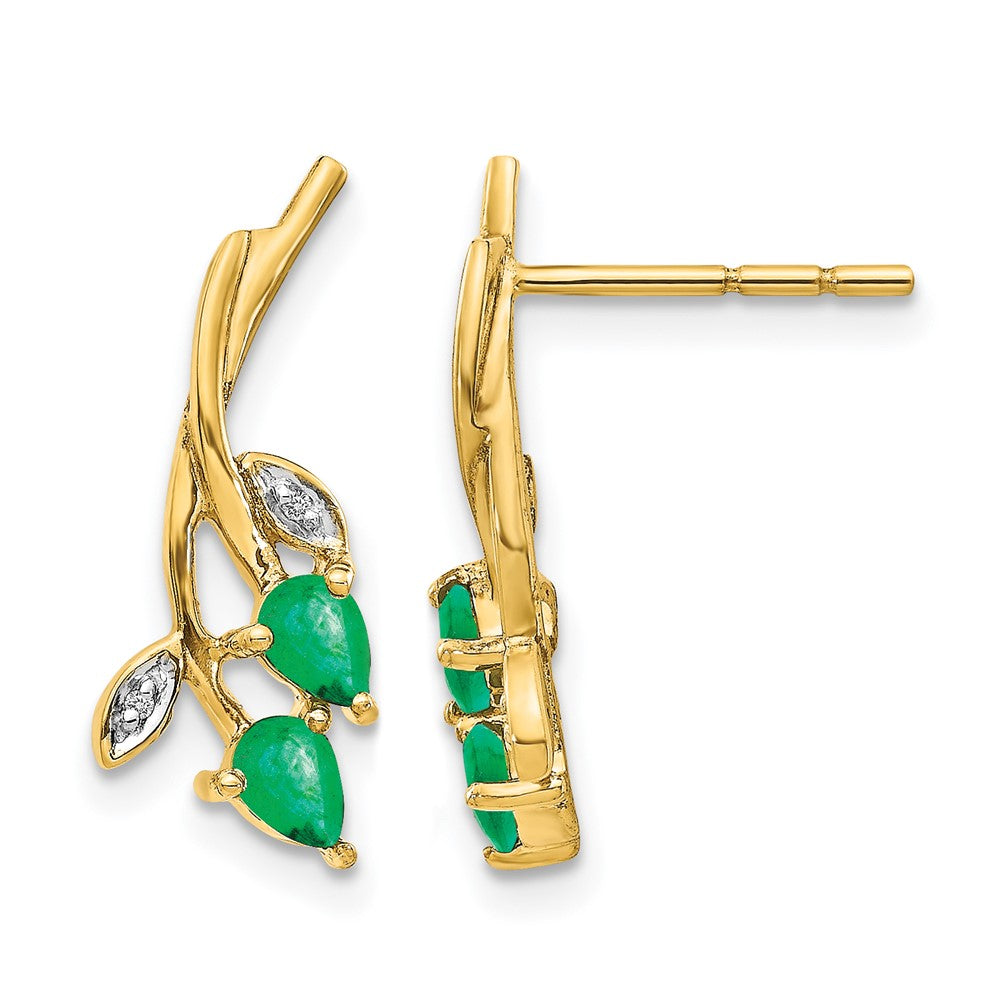 14k Diamond and Pear Emerald Floral Post Earrings