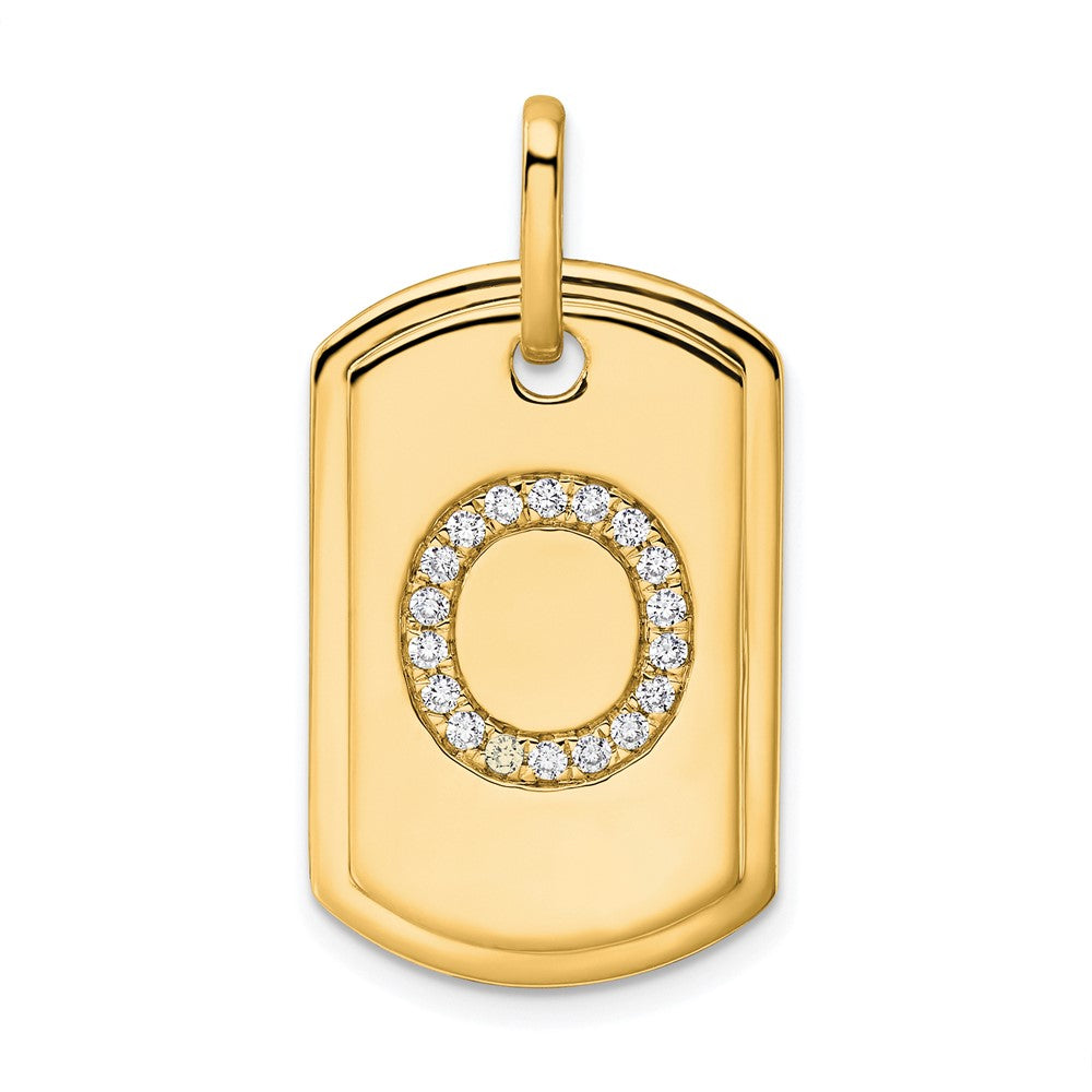 14K Diamond Initial O Dog Tag Charm