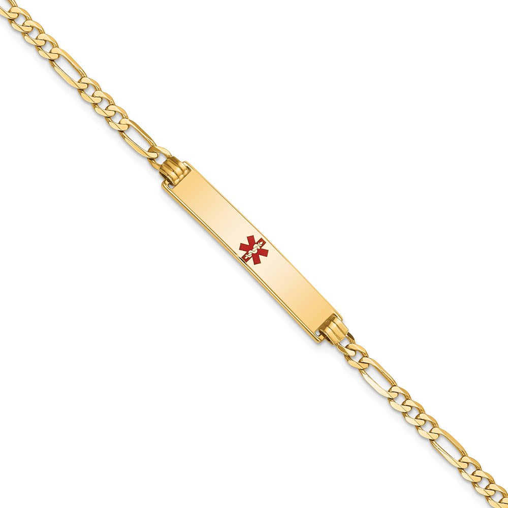 14K Medical Red Enamel Flat Figaro Link ID Bracelet