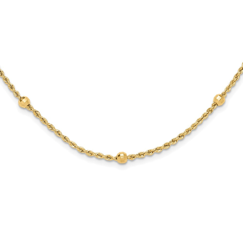 14k Mirror Beads and Diamond-cut Rope Chain 7-Station 18 inch Necklace