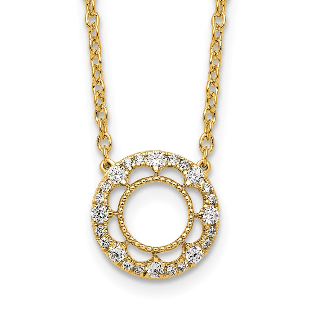 14k Polished 1/4 carat Diamond Fancy Floral Circle 18 inch Necklace