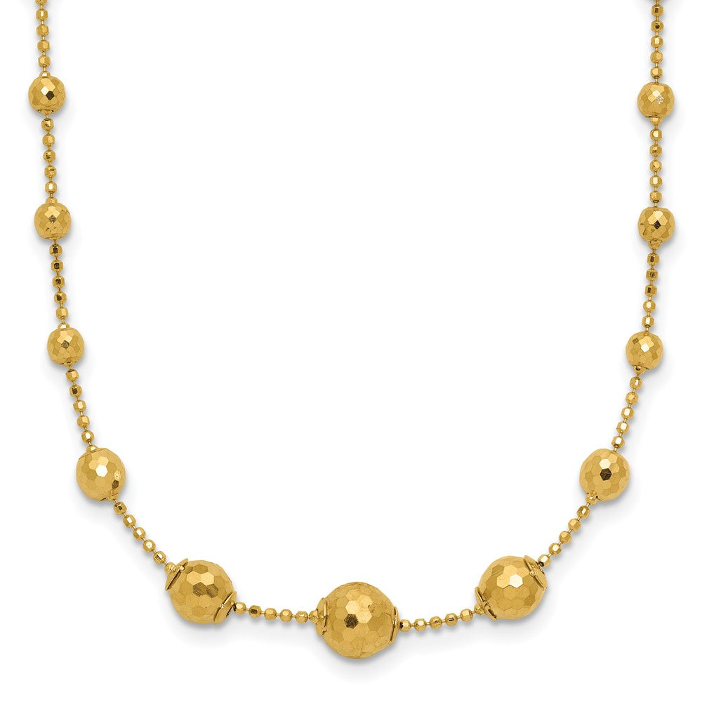 14K Polished Graduated Facet Beads 17 inch Necklace