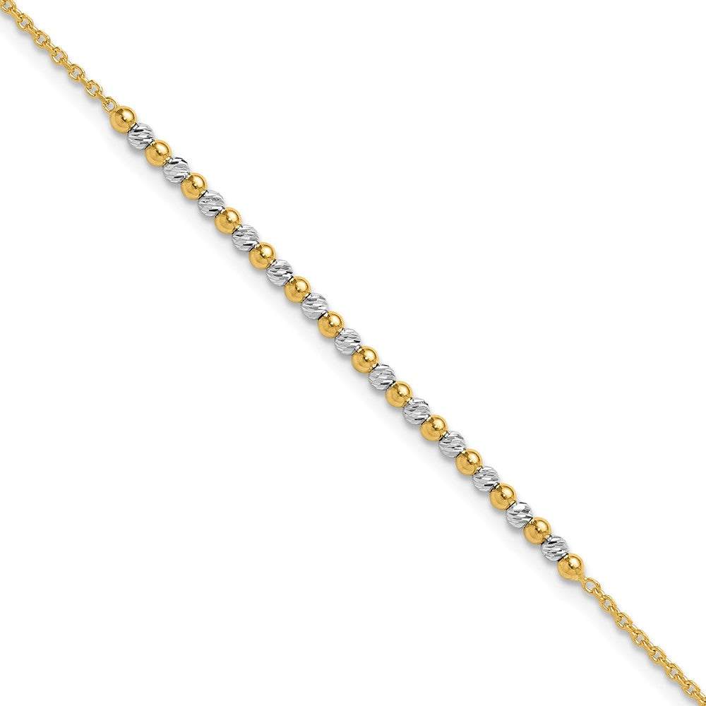 14K Two-tone Diamond-cut Beaded 7.5 inch Bracelet - 2