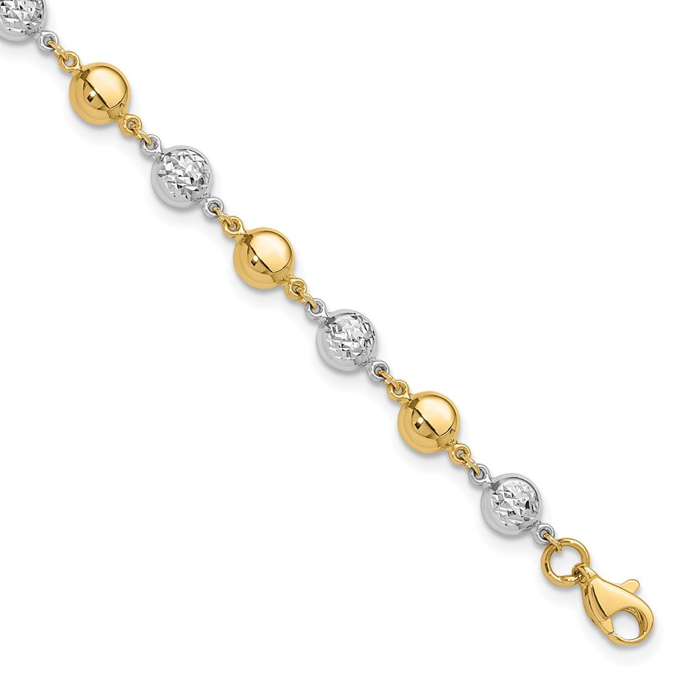 14K Two-tone Polished and Diamond-cut Puffed Beads 7.75 inch Bracelet