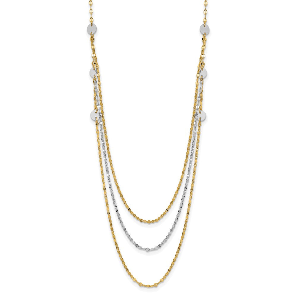 14k Two-tone Triple Layer Polished Circles Fancy 18 inch Necklace