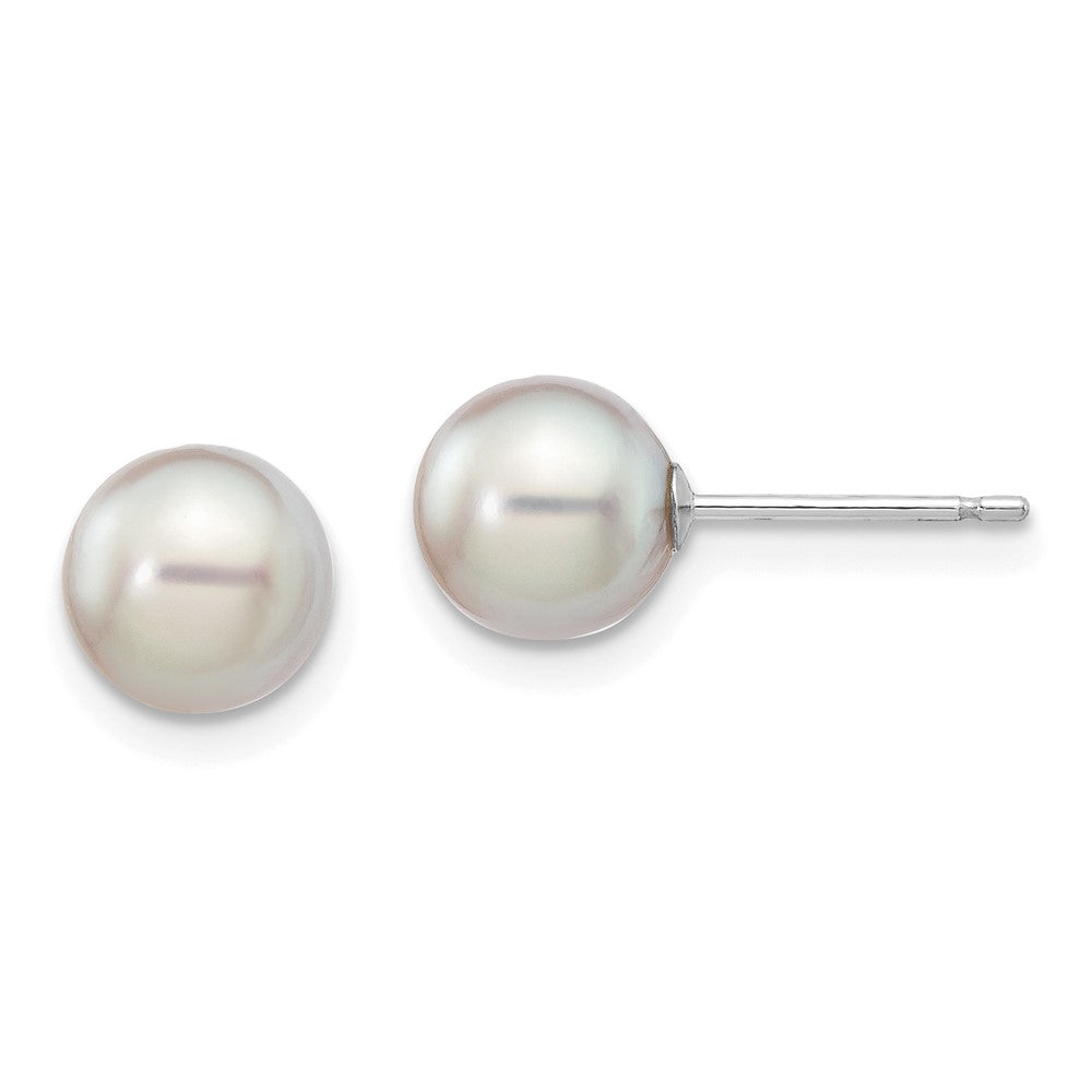 14k White Gold 6-7mm Grey Round Akoya Saltwater Cultured Pearl Post Earrings