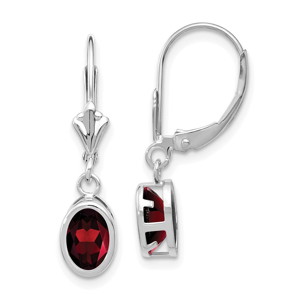 14k White Gold 7x5mm Oval Garnet Leverback Earrings