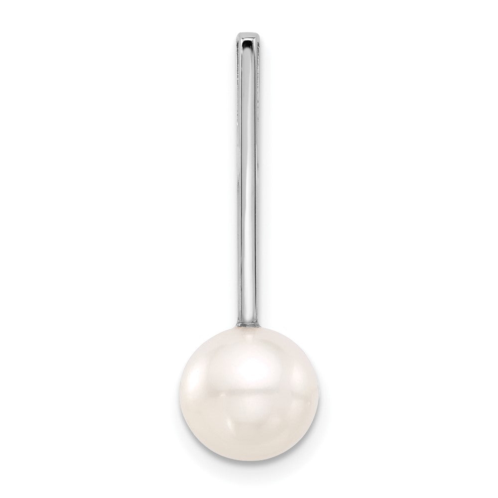 14K White Gold 8-9mm Round Freshwater Cultured Pearl Drop Chain Slide