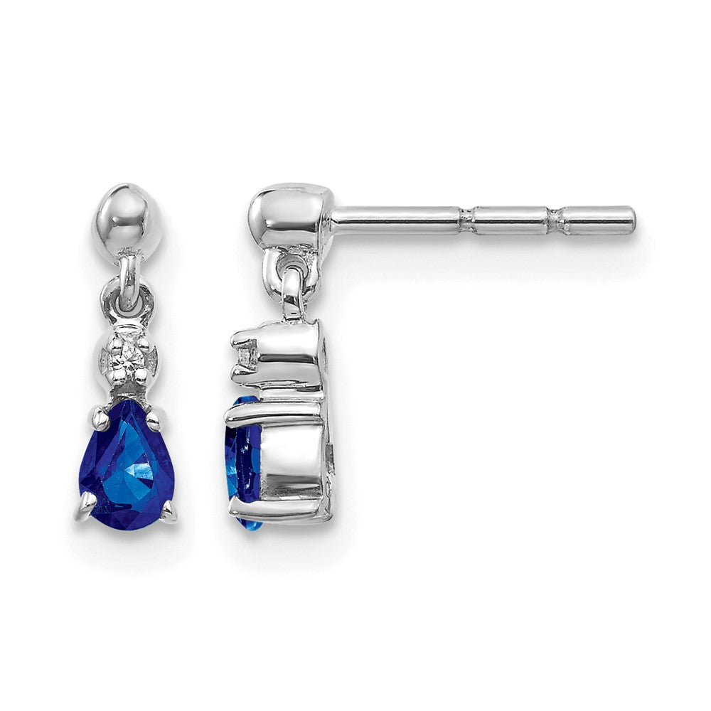 14k White Gold Blue Sapphire and Diamond Dangle Post Earrings