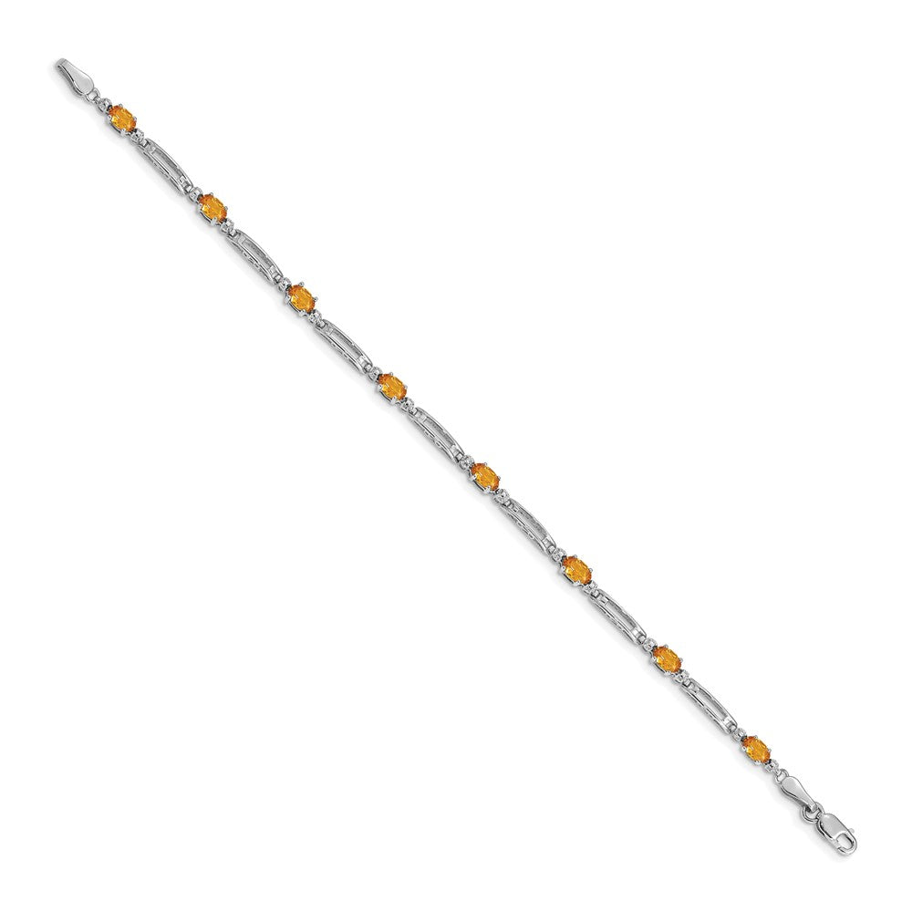 14k White Gold Complete Diamond and Oval Citrine Fancy Link 7 inch Bracelet