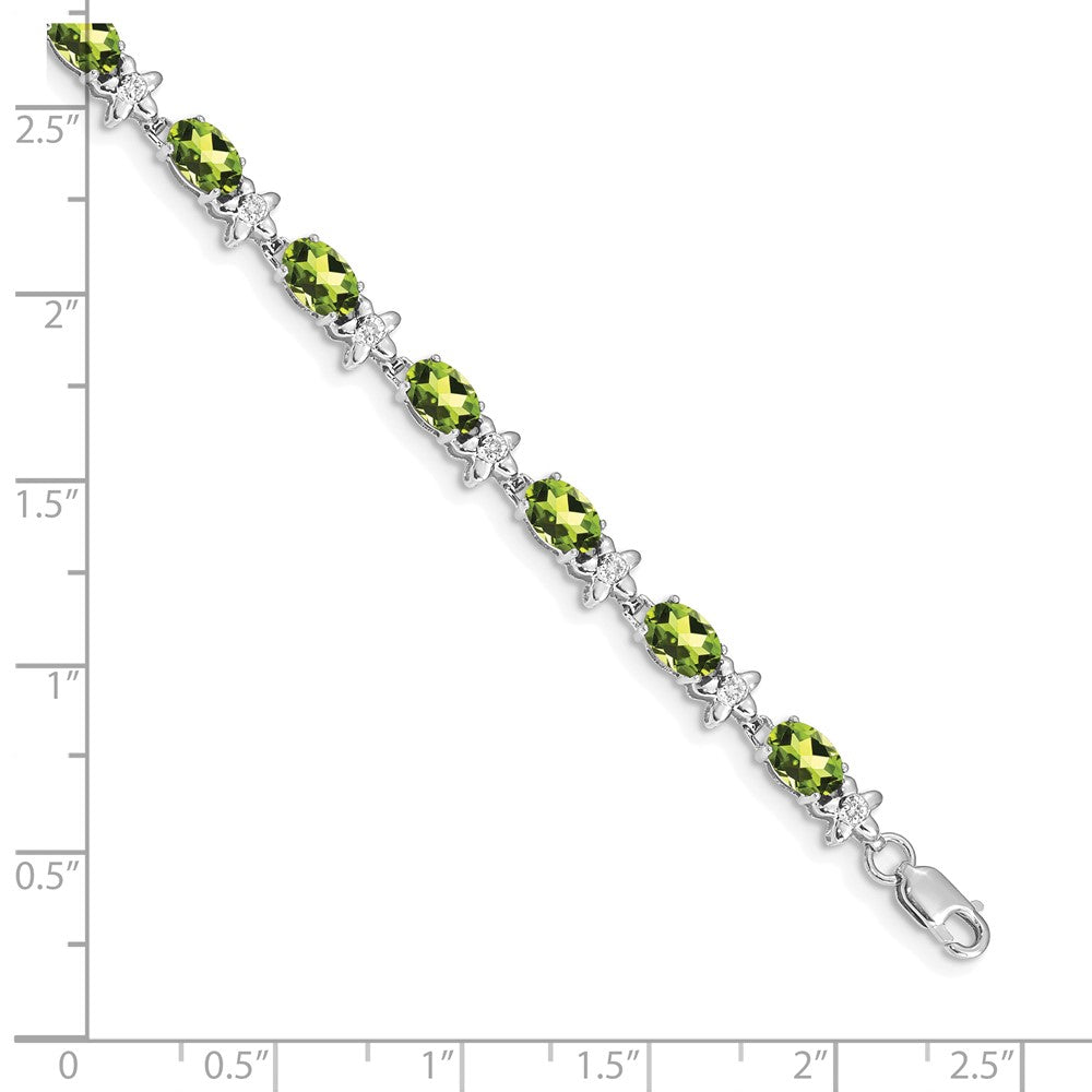 14k White Gold Complete Diamond and Oval Peridot Floral 7 inch Bracelet