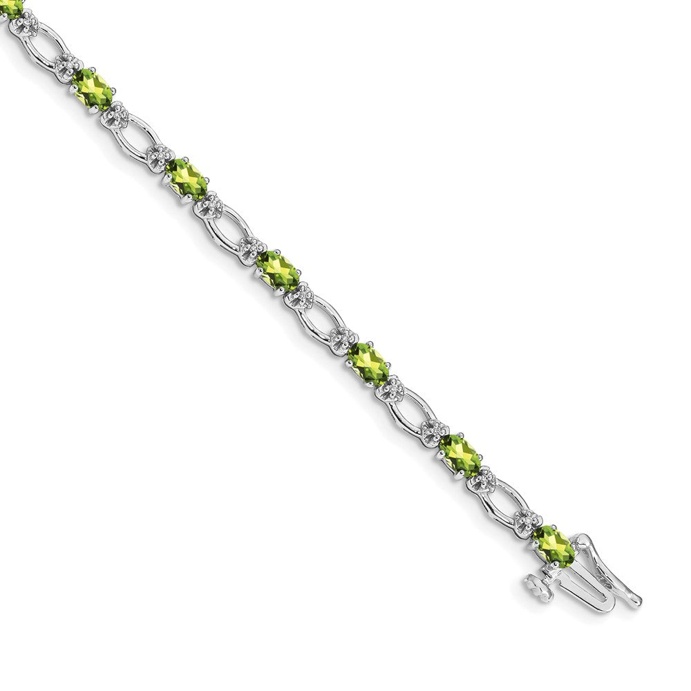 14k White Gold Complete Diamond and Oval Peridot Heart Accent 7 inch Bracelet