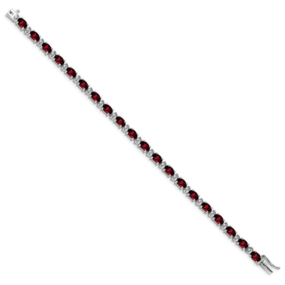 14k White Gold Complete Oval Garnet and Diamond 7 inch Bracelet