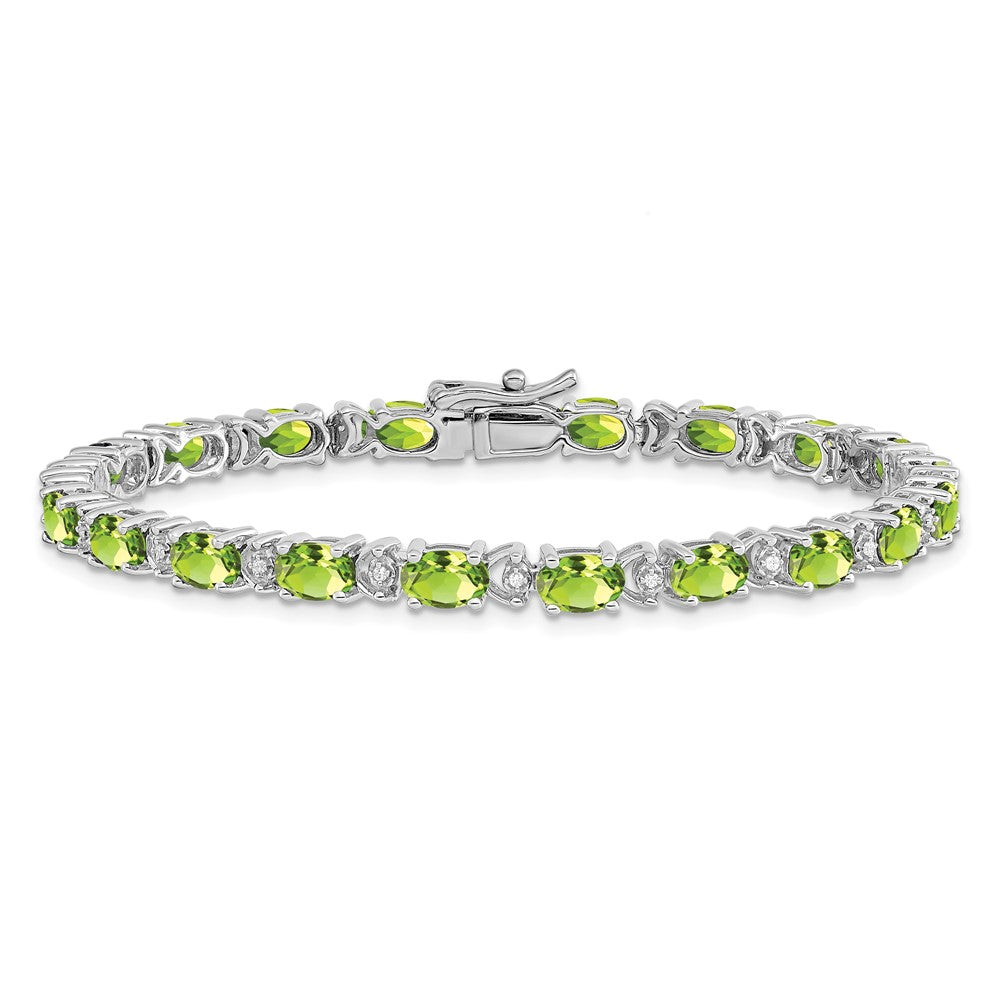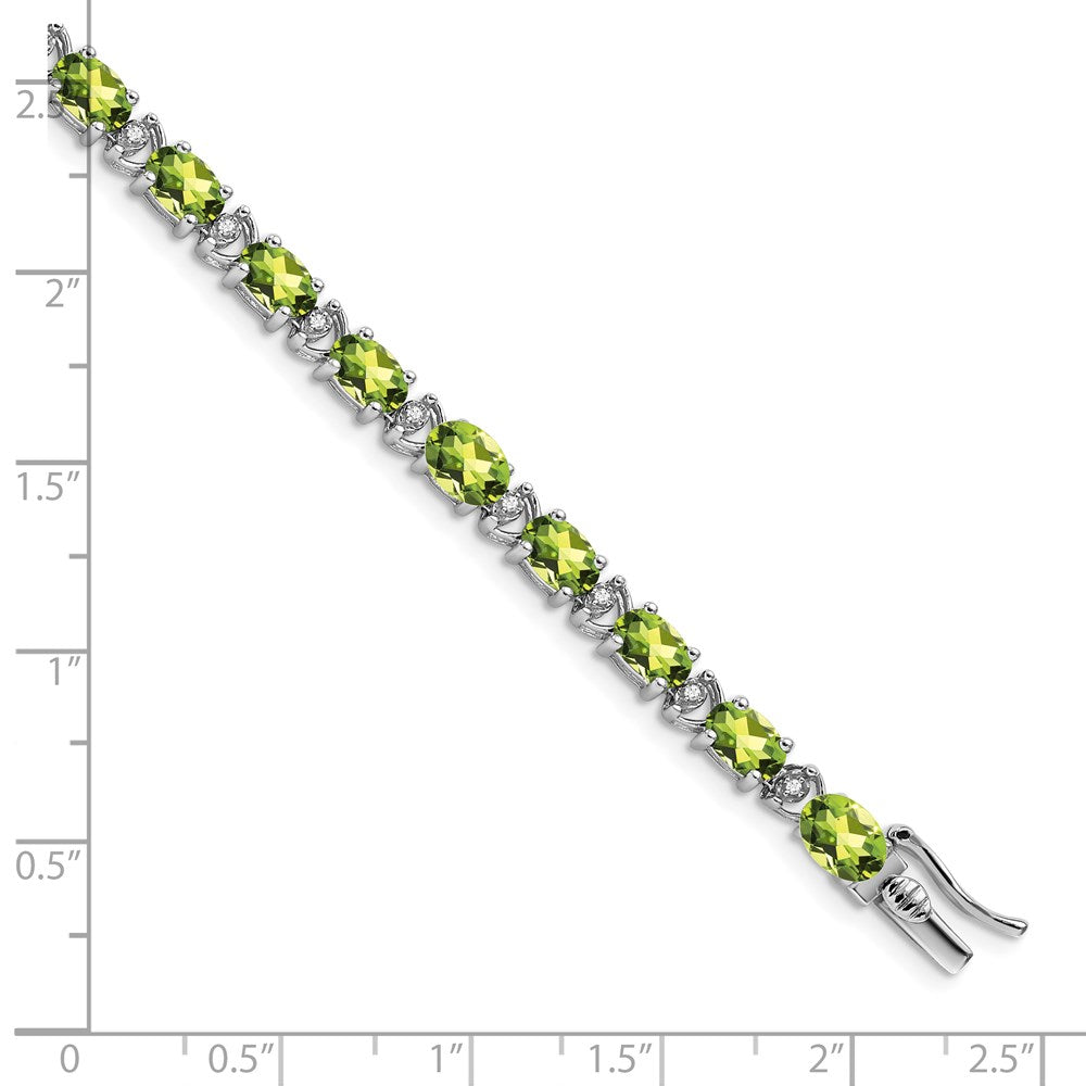 14k White Gold Complete Oval Peridot and Diamond 7 inch Bracelet