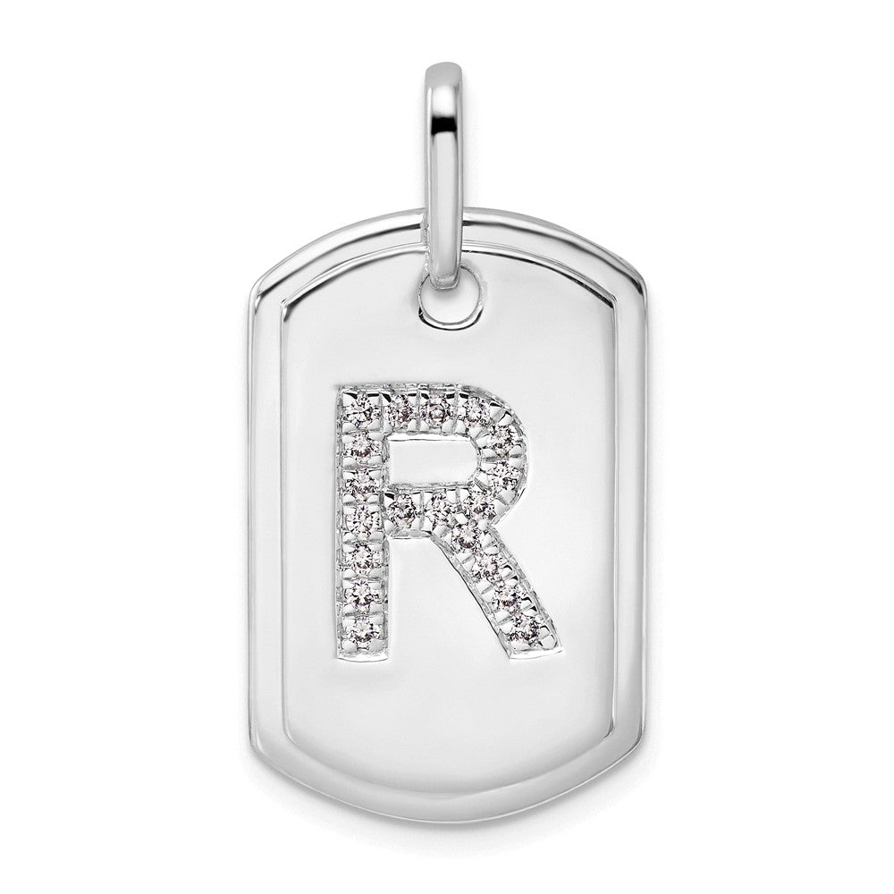 14K White Gold  Diamond Initial R Dog Tag Charm