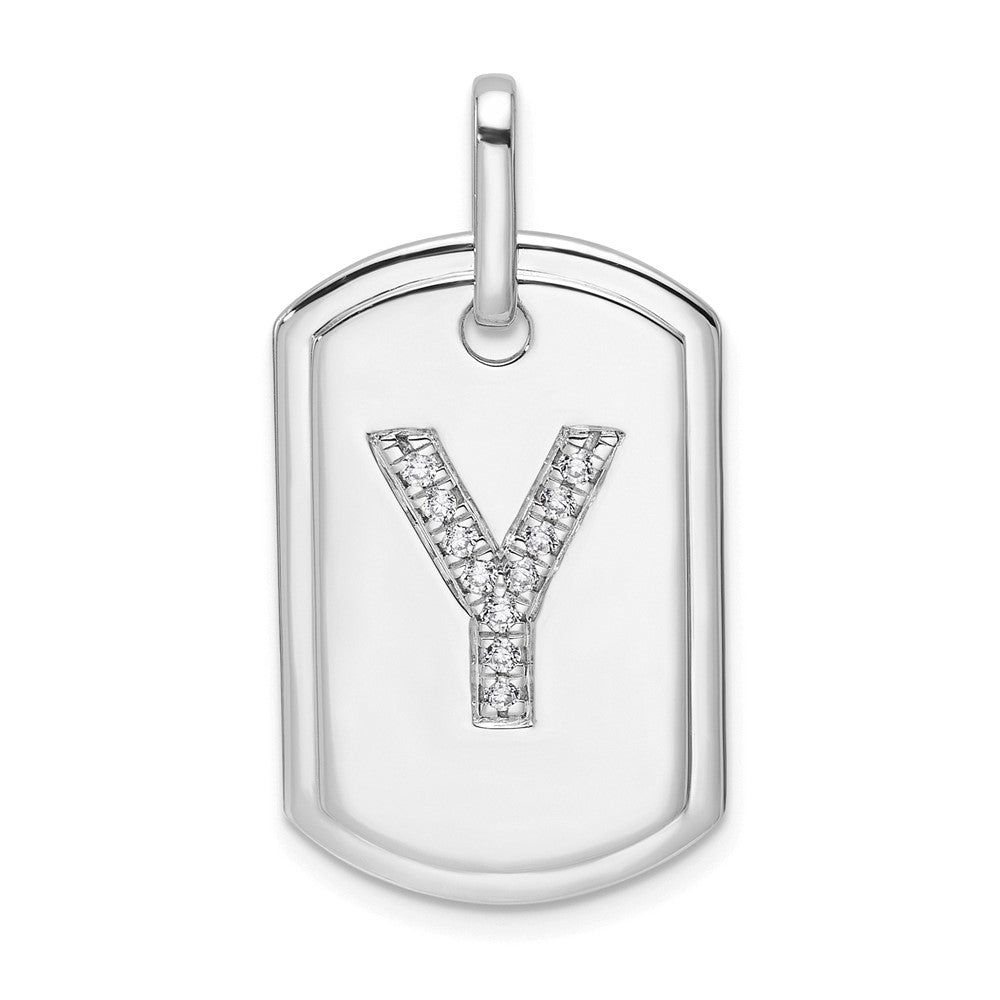 14K White Gold  Diamond Initial Y Dog Tag Charm