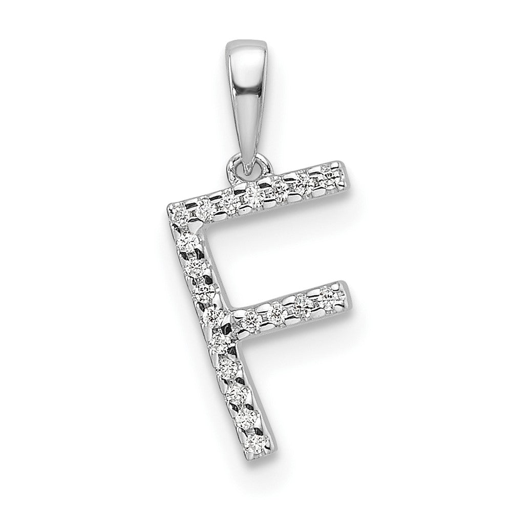 14K White Gold Diamond Letter F Initial Pendant - 5