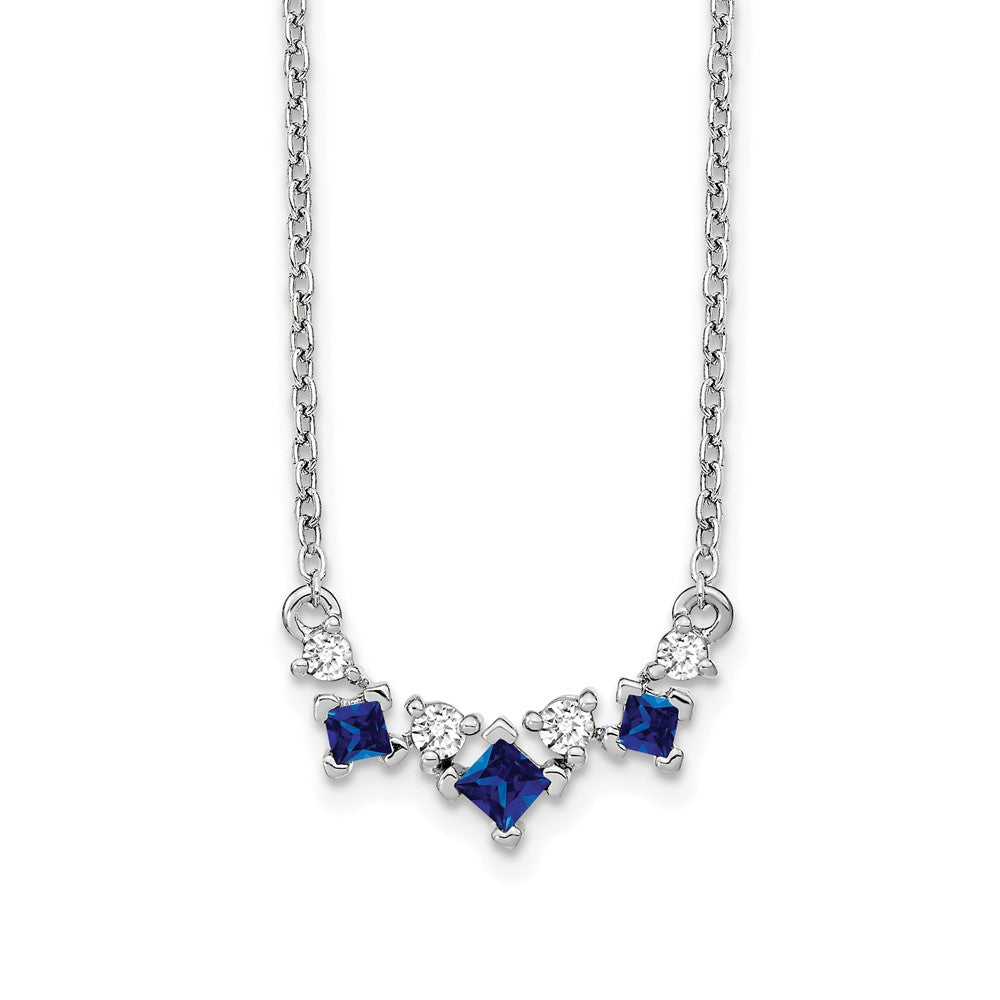 14k White Gold Princess Sapphire and Diamond 18 inch Necklace