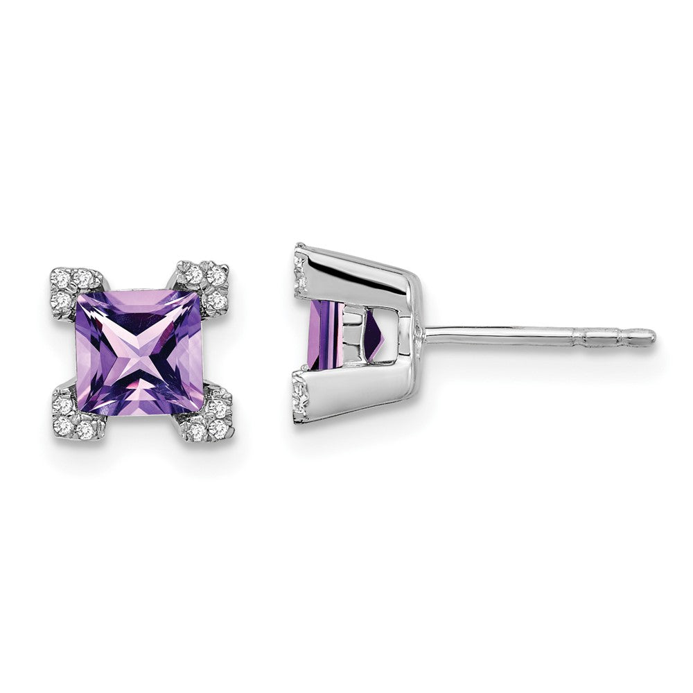 14k White Gold Square Amethyst and Diamond Earrings - 2