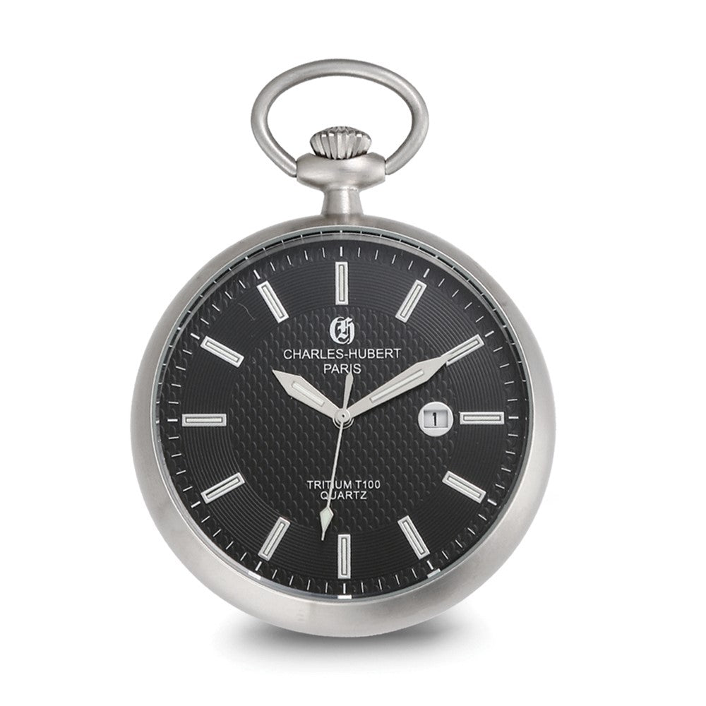 Charles Hubert Stainless Steel Open Face Tritium Quartz Pocket Watch - 2