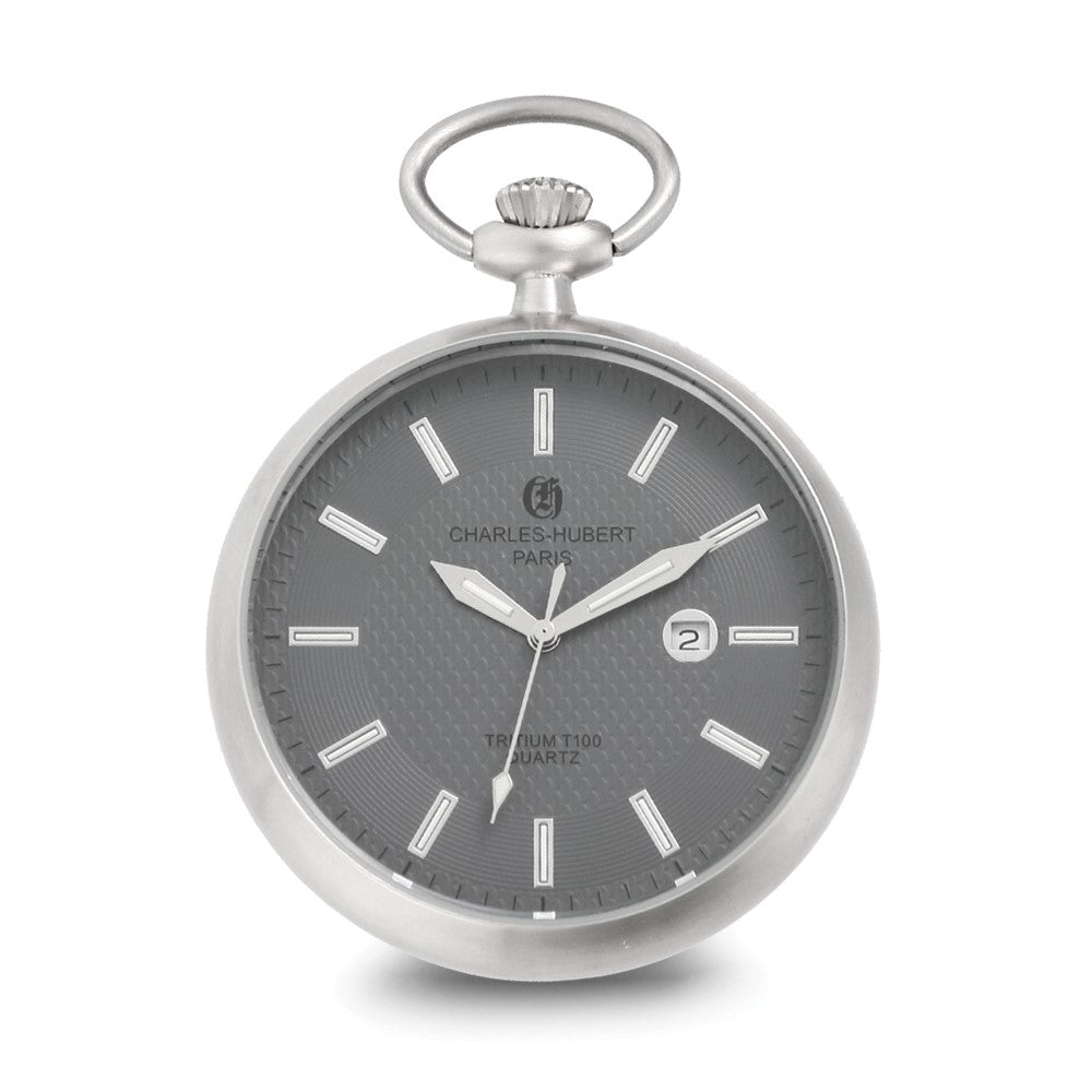 Charles Hubert Stainless Steel Open Face Tritium Quartz Pocket Watch - 3