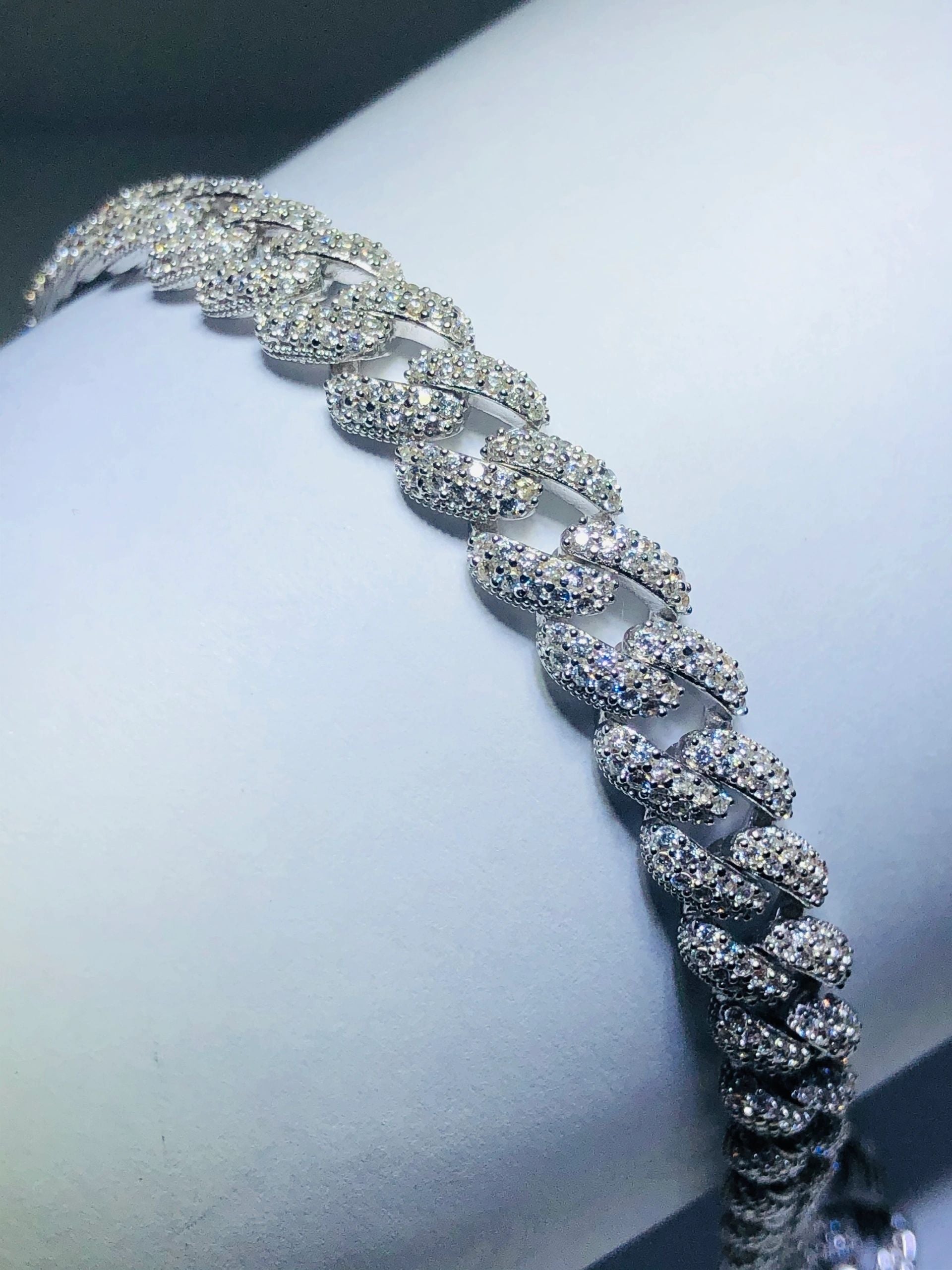 platinum over sterling silver pave white sapphire cuban link tennis bracelet