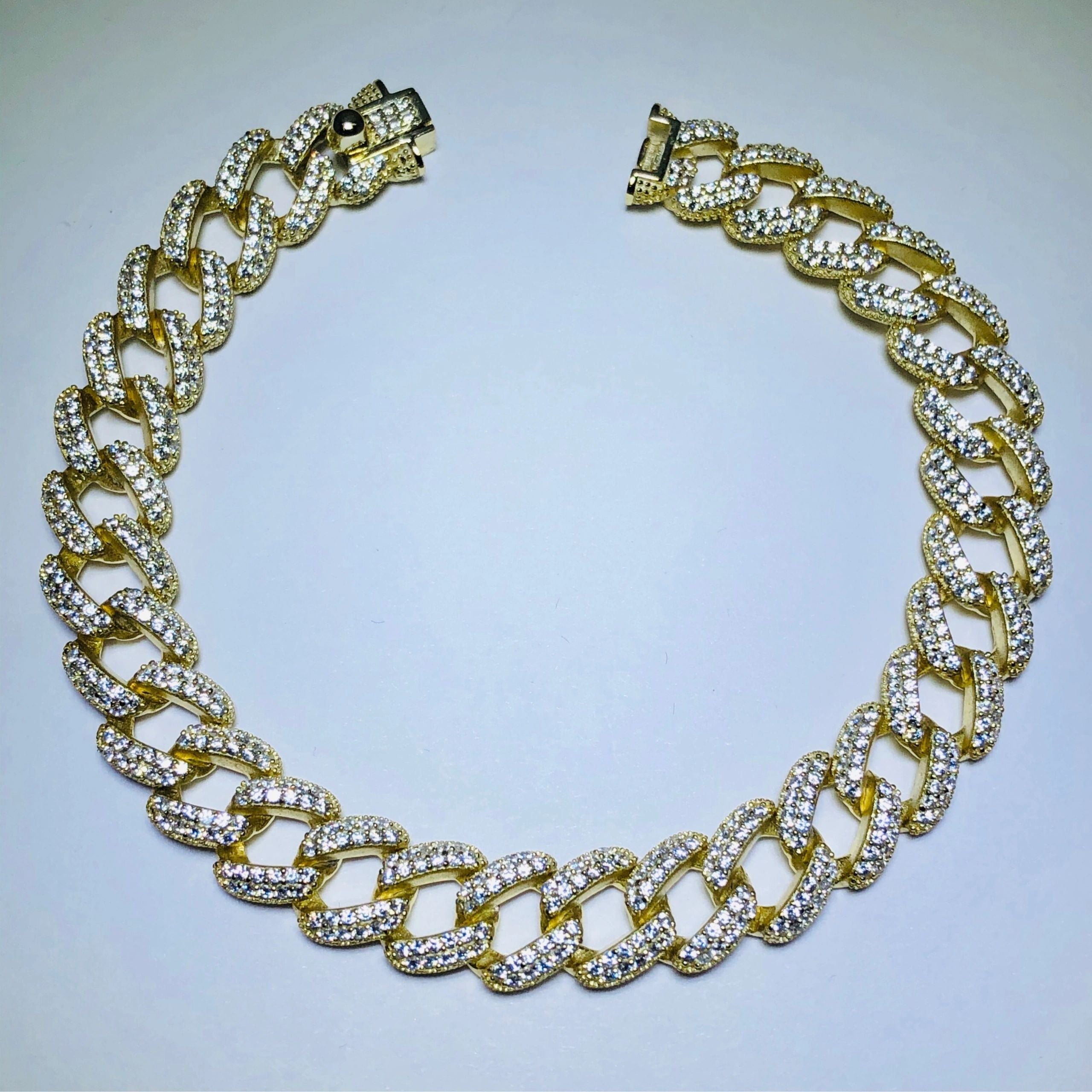 18k yellow gold over sterling silver pave link bracelet