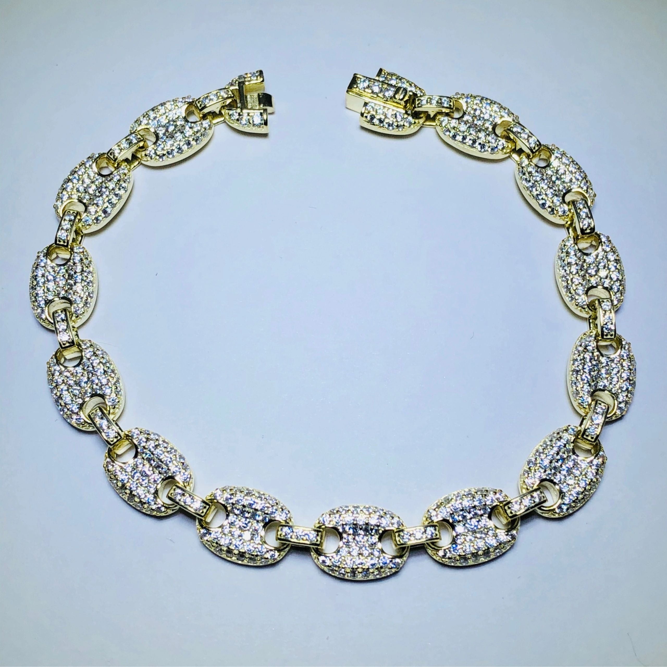 18k yellow gold over sterling silver pave gucci link bracelet