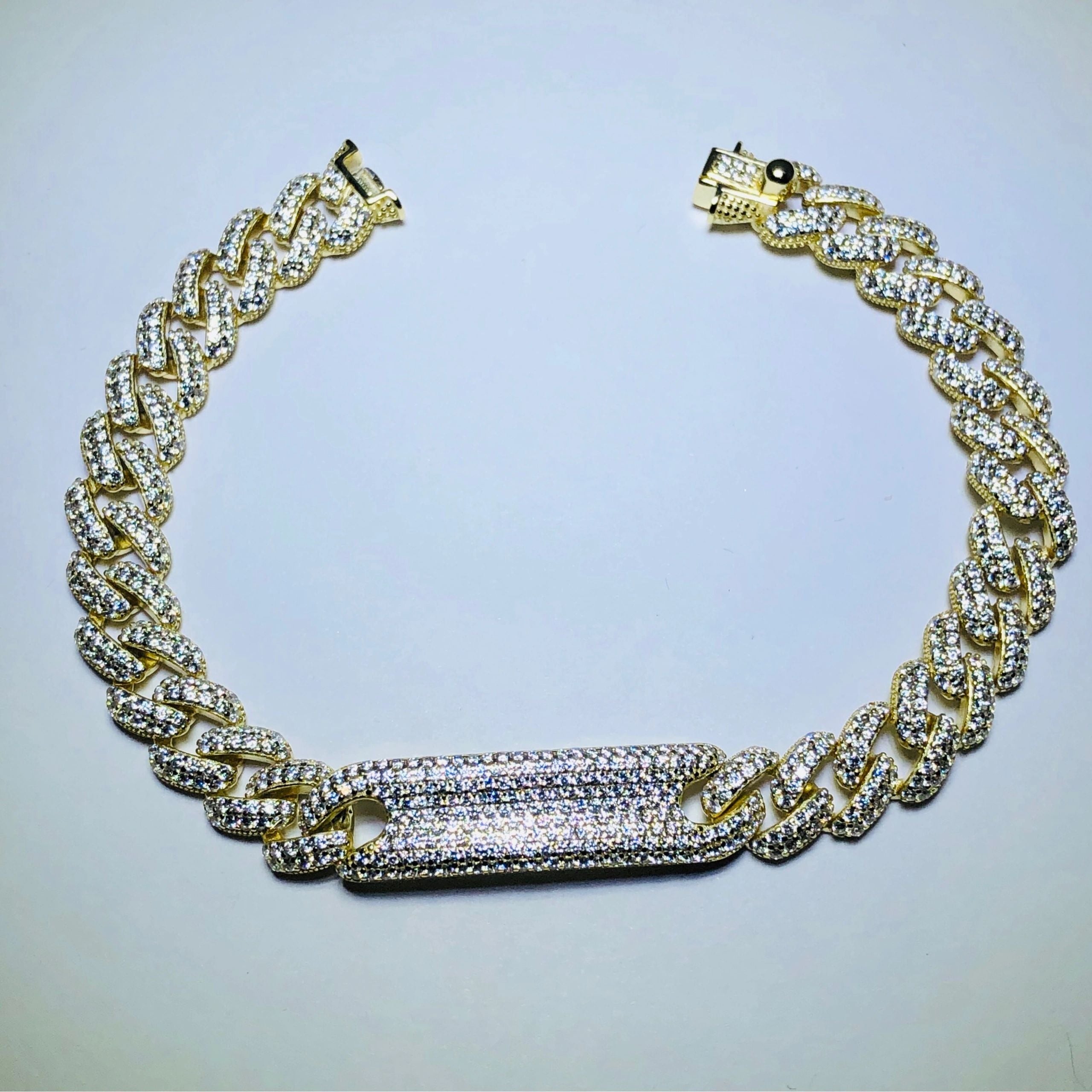 LIV 18k yellow gold over sterling silver pave bar link bracelet