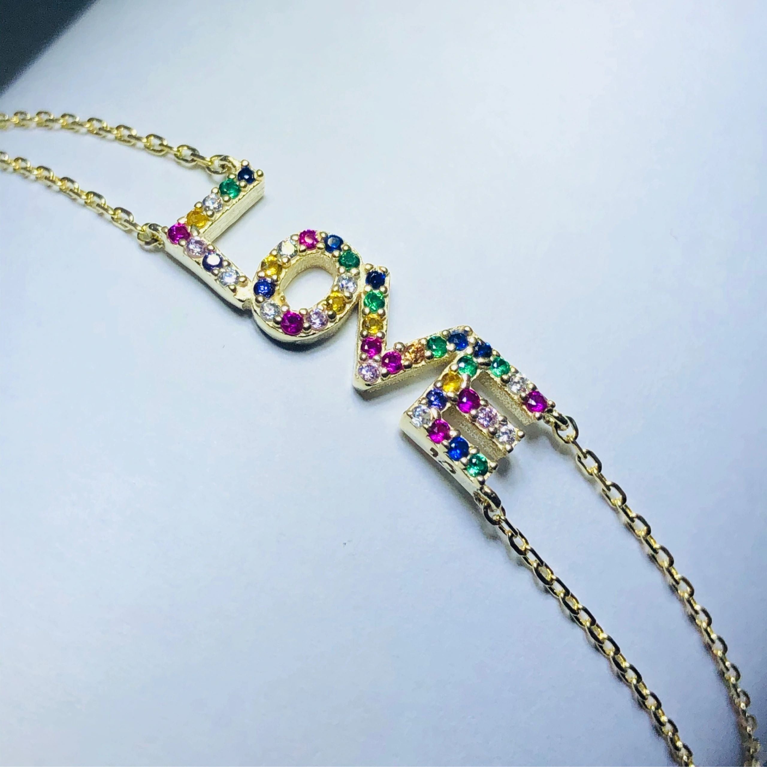18k yellow gold over sterling silver pave rainbow love bracelet