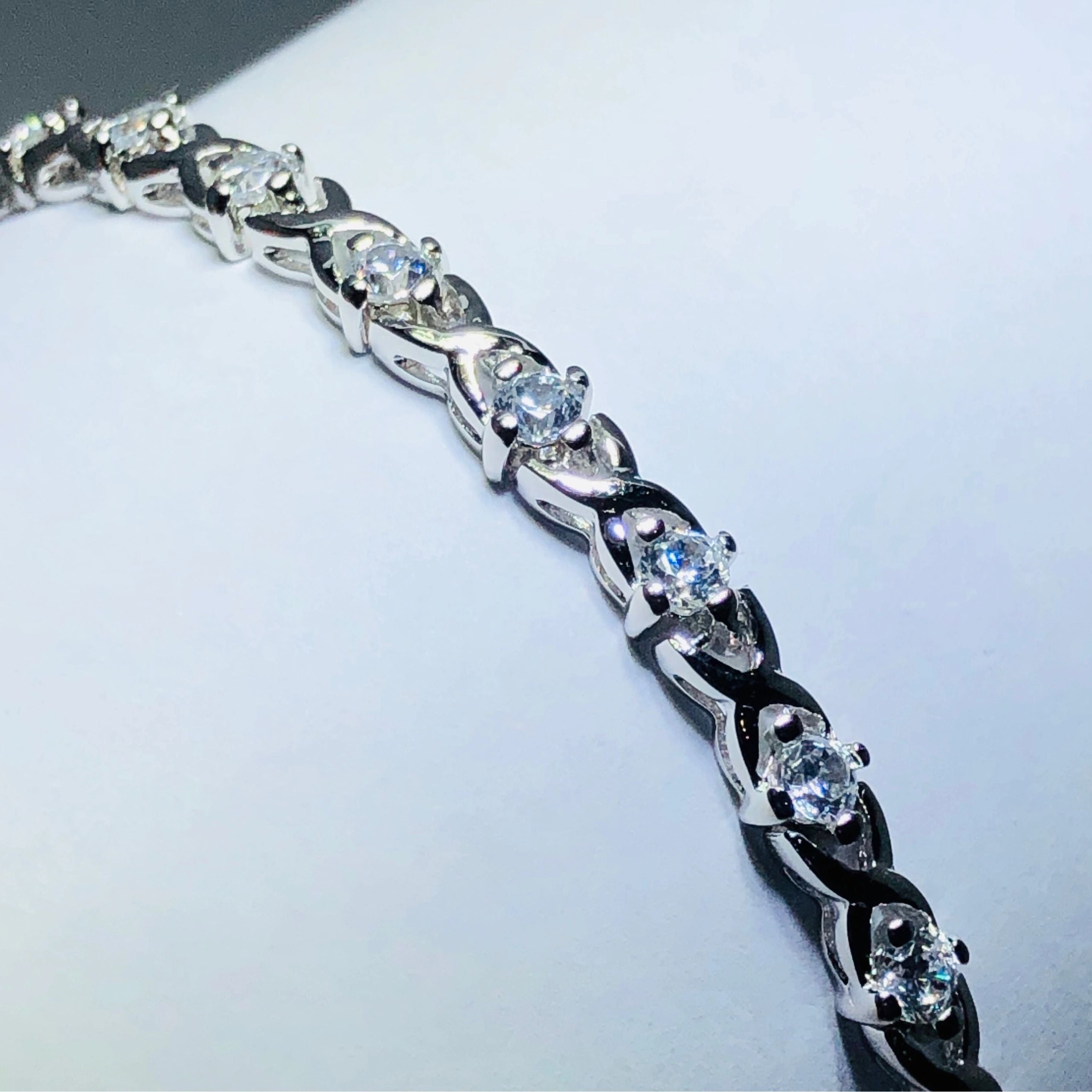 platinum over sterling silver white sapphire xoxo tennis bracelet