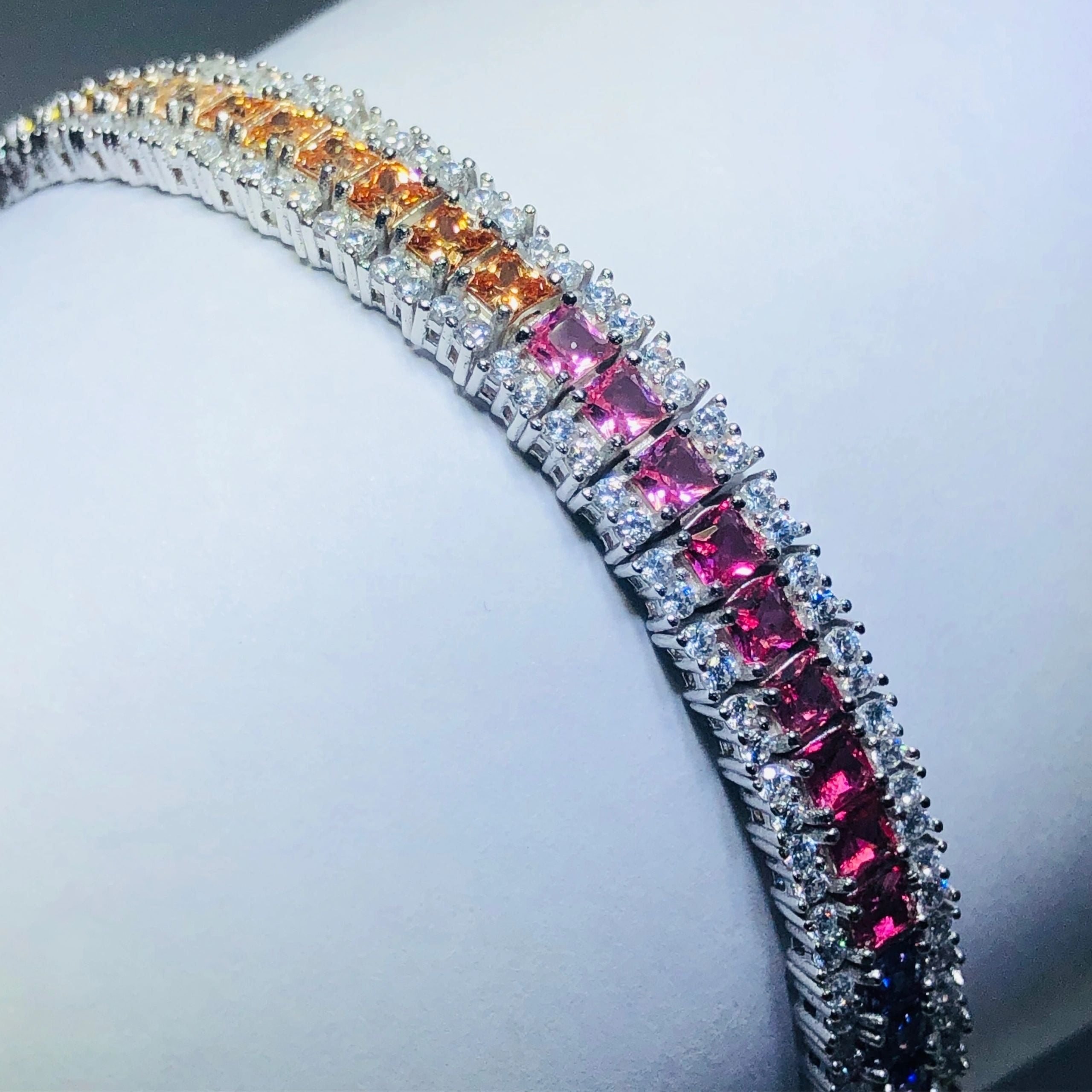 Platinum over sterling silver rainbow sapphire wide tennis bracelet bracelet