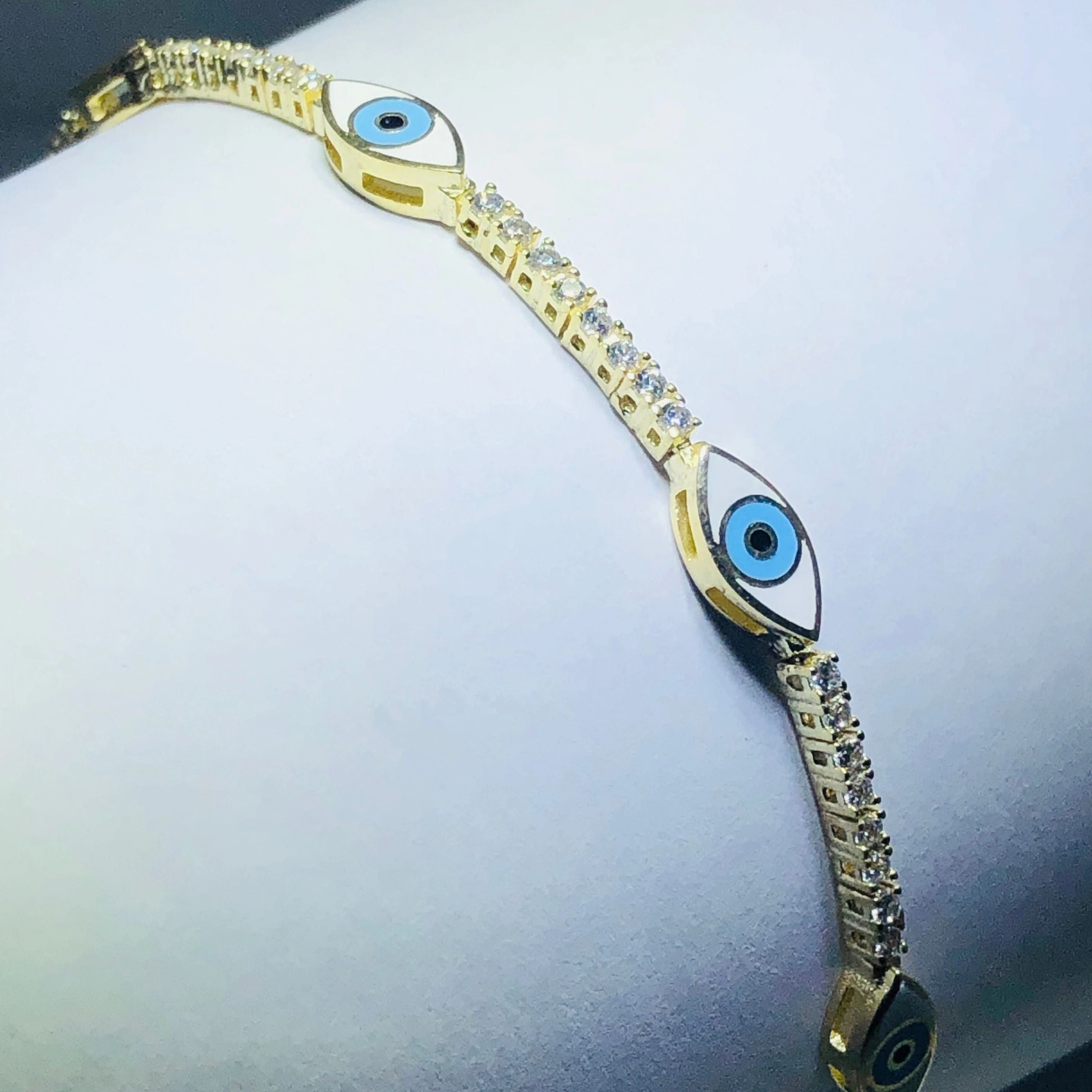 18k yellow gold over sterling silver white sapphire evil eye tennis bracelet