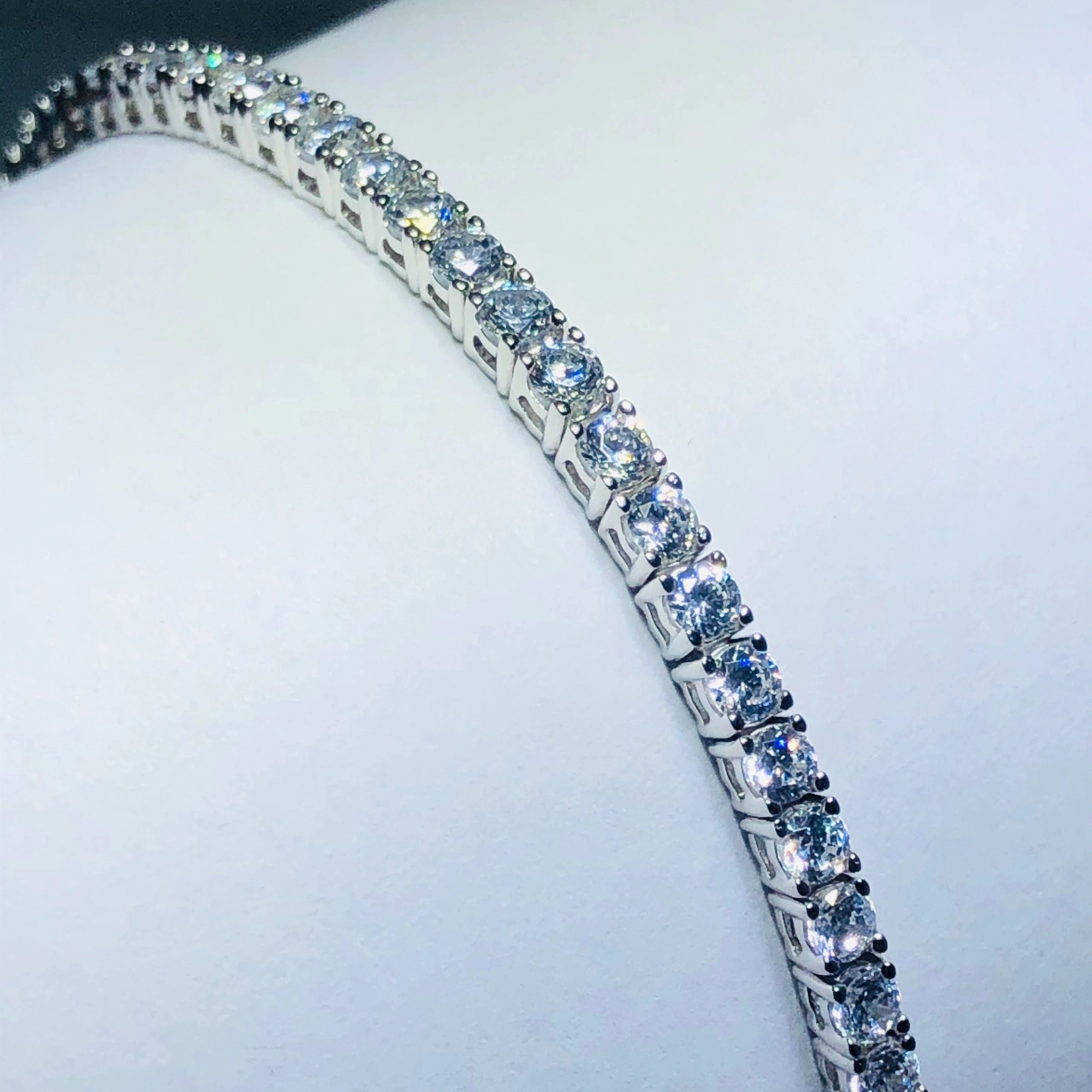 platinum over sterling silver white sapphire prong set 3mm tennis bracelet