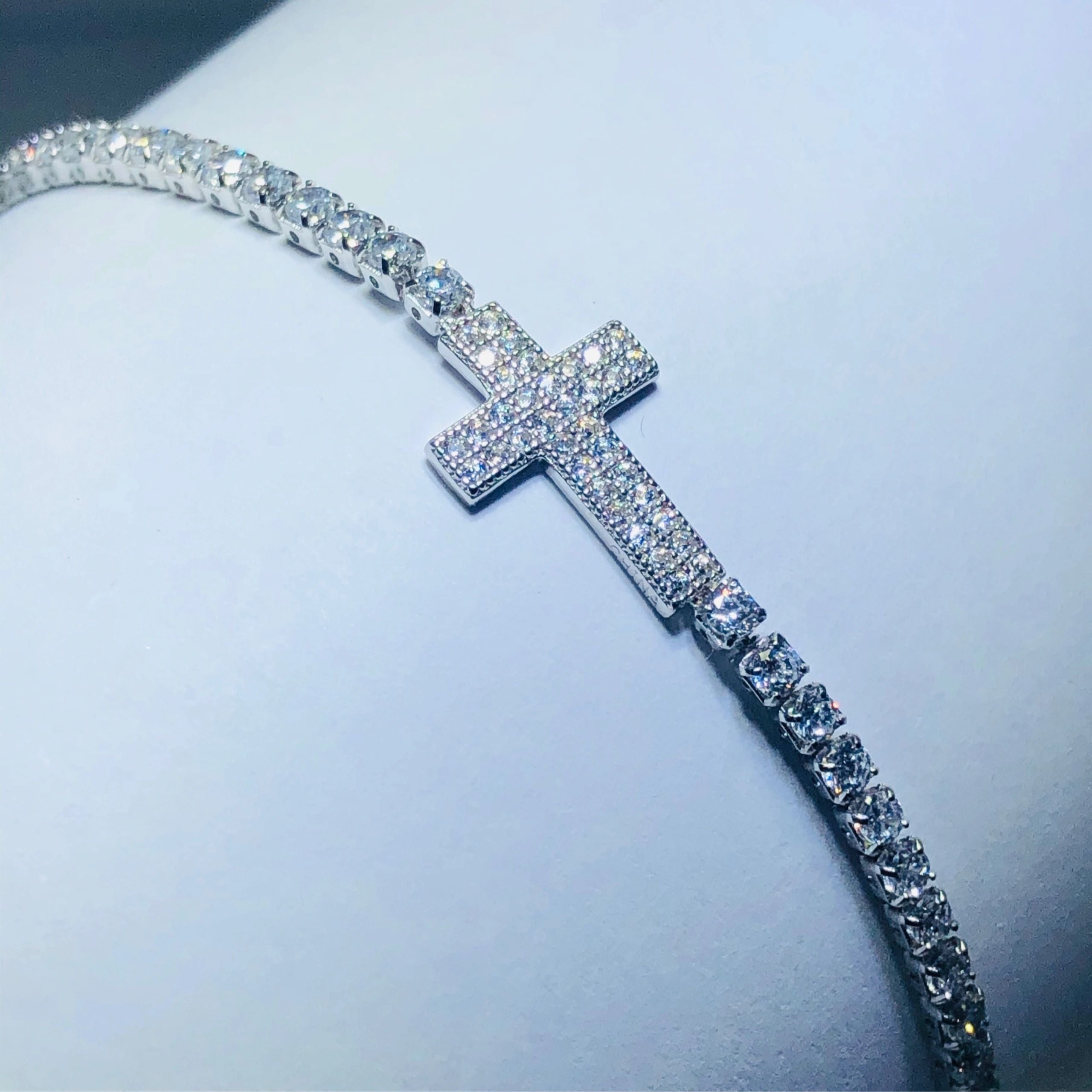 platinum over sterling silver white sapphire cross design tennis bracelet