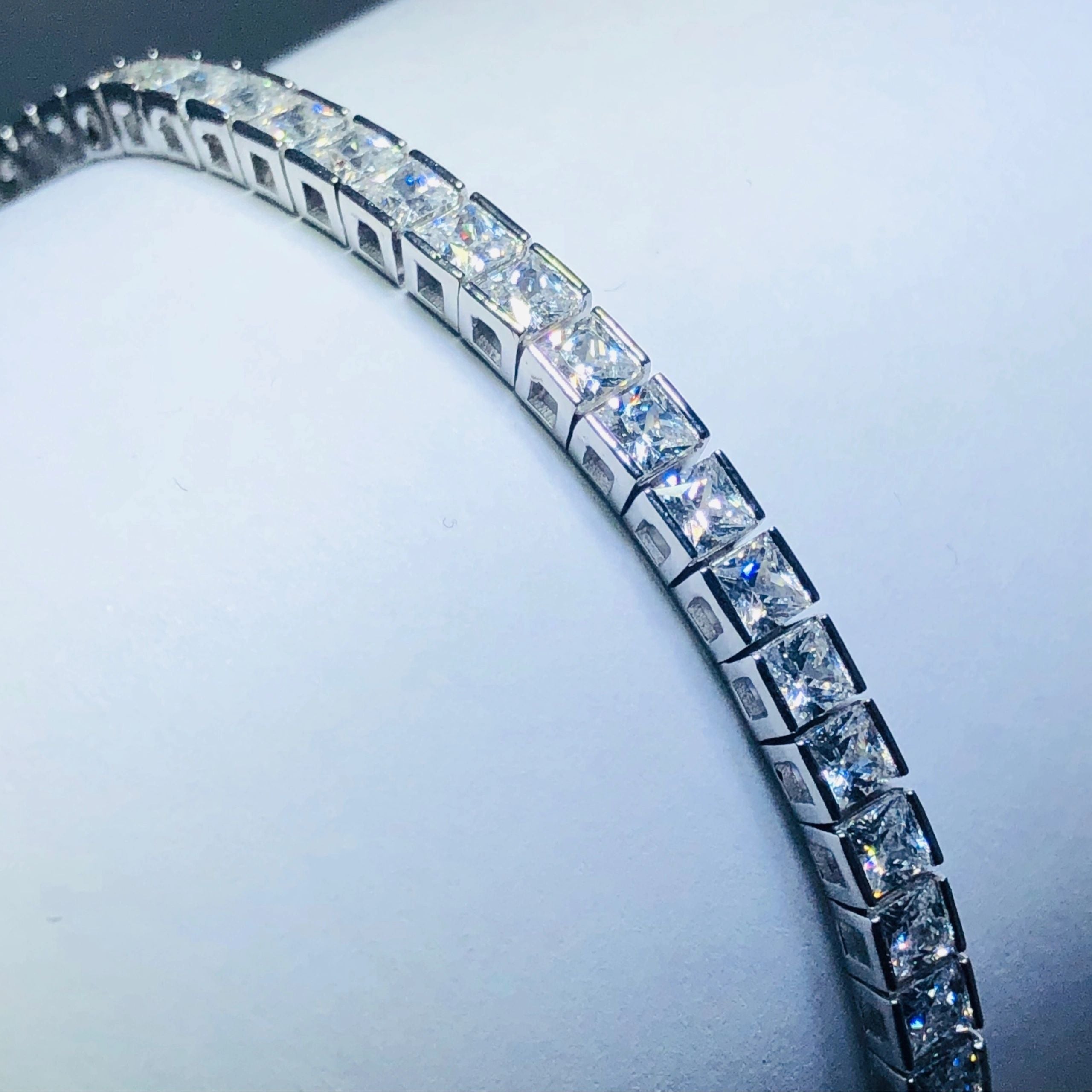platinum over sterling silver white sapphire princess cut tennis bracelet
