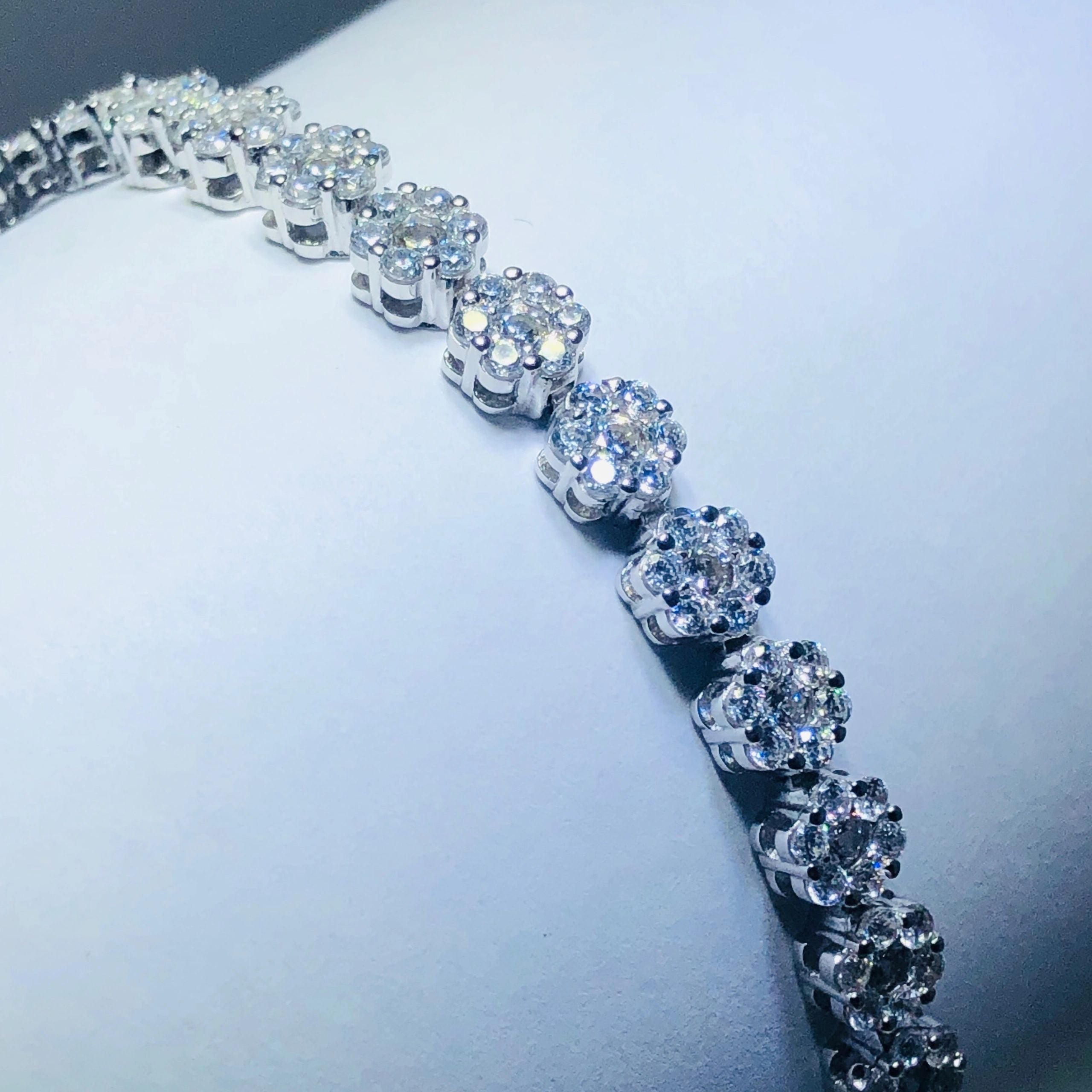 platinum over sterling silver white sapphire prong set flower tennis bracelet