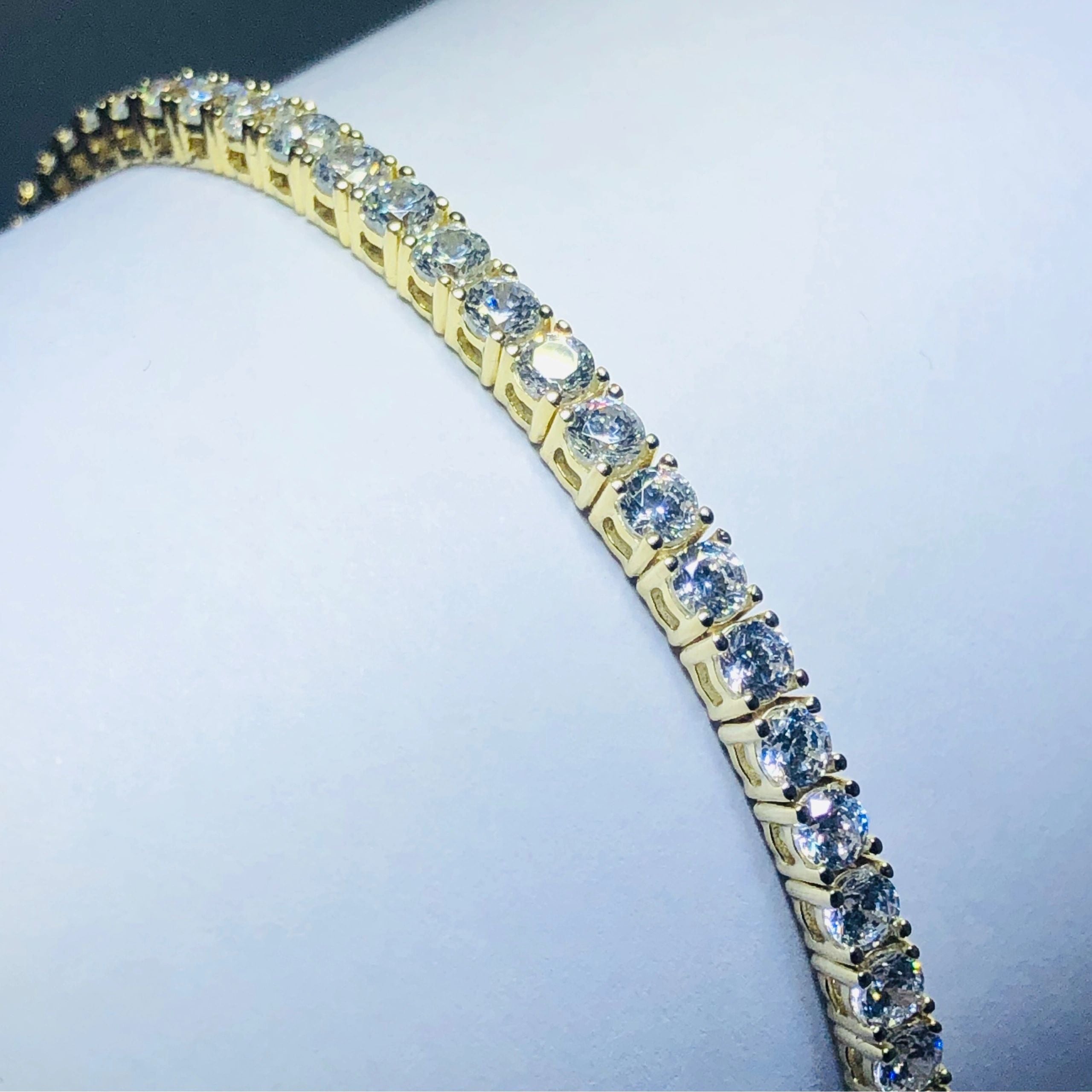 18k yellow gold over sterling silver white sapphire round cut tennis bracelet