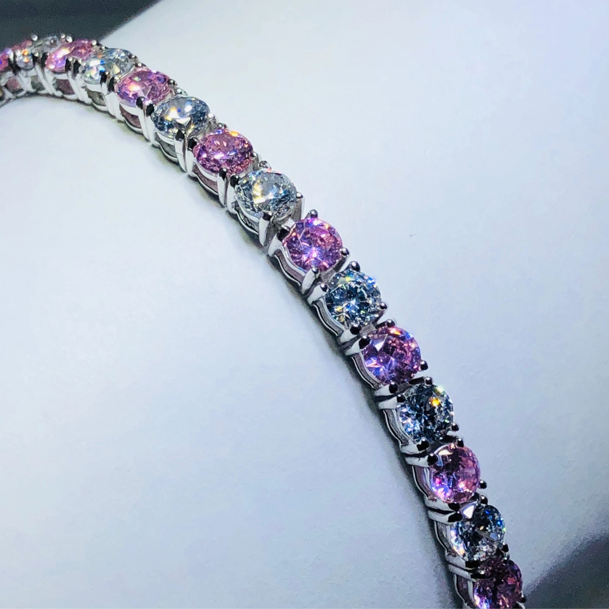 platinum over sterling silver pink & white sapphire tennis bracelet