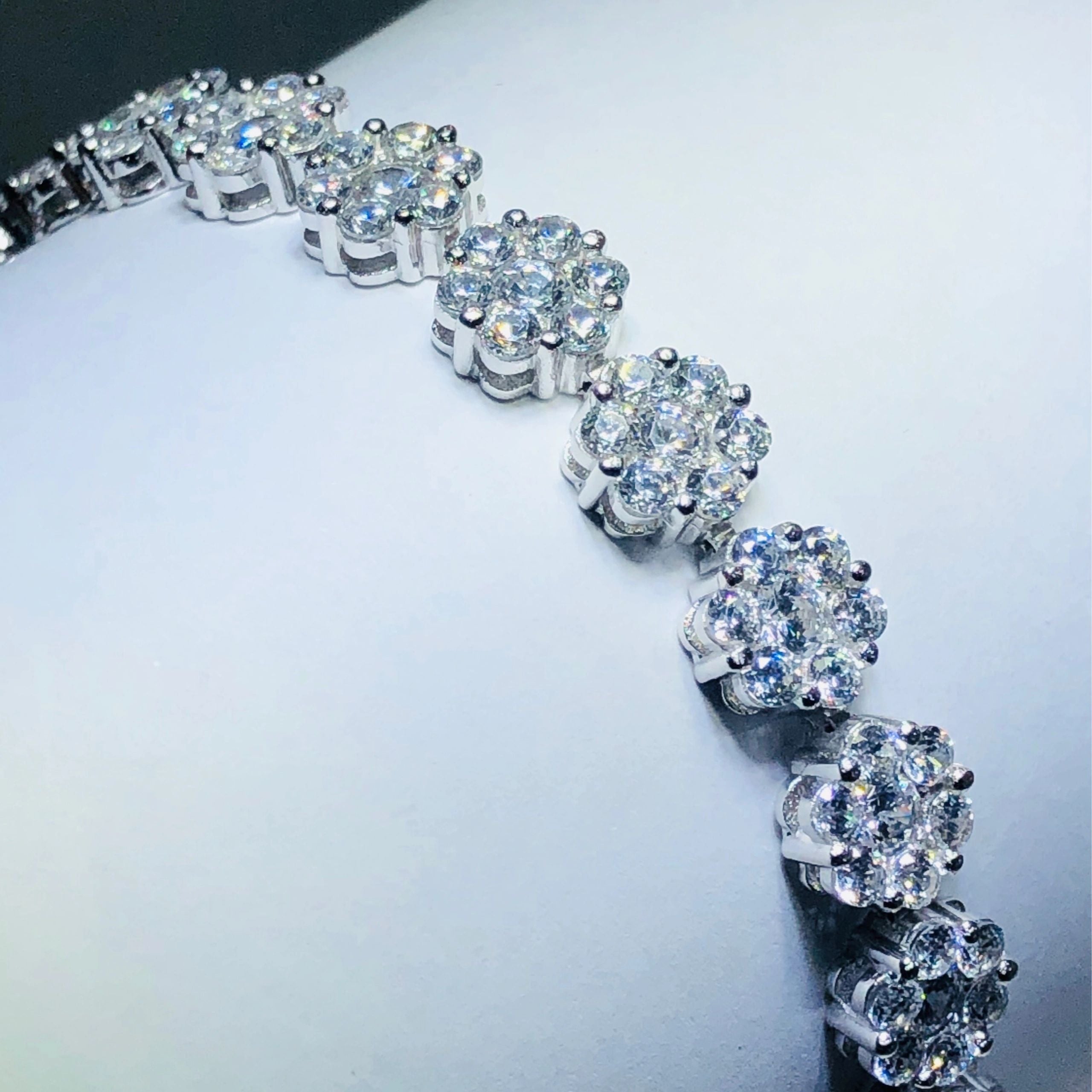 platinum over sterling silver white sapphire flower tennis bracelet