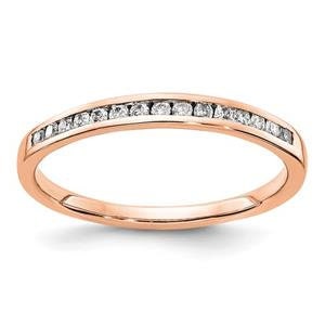 Get ready to stack in style with our LIV 14k Rose Gold & Diamonds Channel Set 2mm Wide Band Ring! Made with high-quality diamonds and rose gold, this ring is perfect for adding a touch of elegance to any outfit. Plus, its slim design allows for easy stacking, giving you endless possibilities for accessorizing.