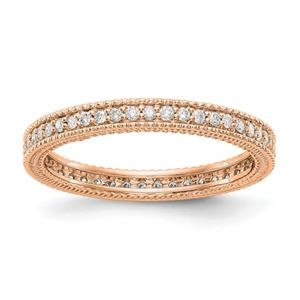 Unleash your playful side with the LIV 14k Rose Gold Pave Cable Design Round Diamond Eternity Band Ring G/VS1. This stunning ring combines a unique cable design with sparkling round diamonds in a gorgeous pave setting. Made with high-quality 14k rose gold, it's a fun and luxurious addition to any jewelry collection. (So go ahead, treat yourself!)