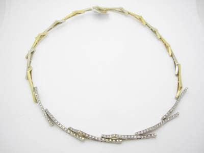 Score a unique, playful look with LIV's 14k Solid Two Tone Gold Tennis Necklace. Crafted with genuine white diamonds in a zig zag design, this piece adds a touch of quirkiness to your collection. Perfect for those who don't take themselves too seriously.