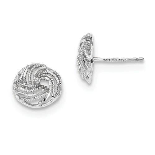 Add a touch of elegance with LIV's Love Knot Design Earrings. Made of 14k solid white gold, these stunning studs feature a diamond-cut cable style for a unique twist. Perfect for any occasion, these earrings will elevate any outfit with a touch of glam.