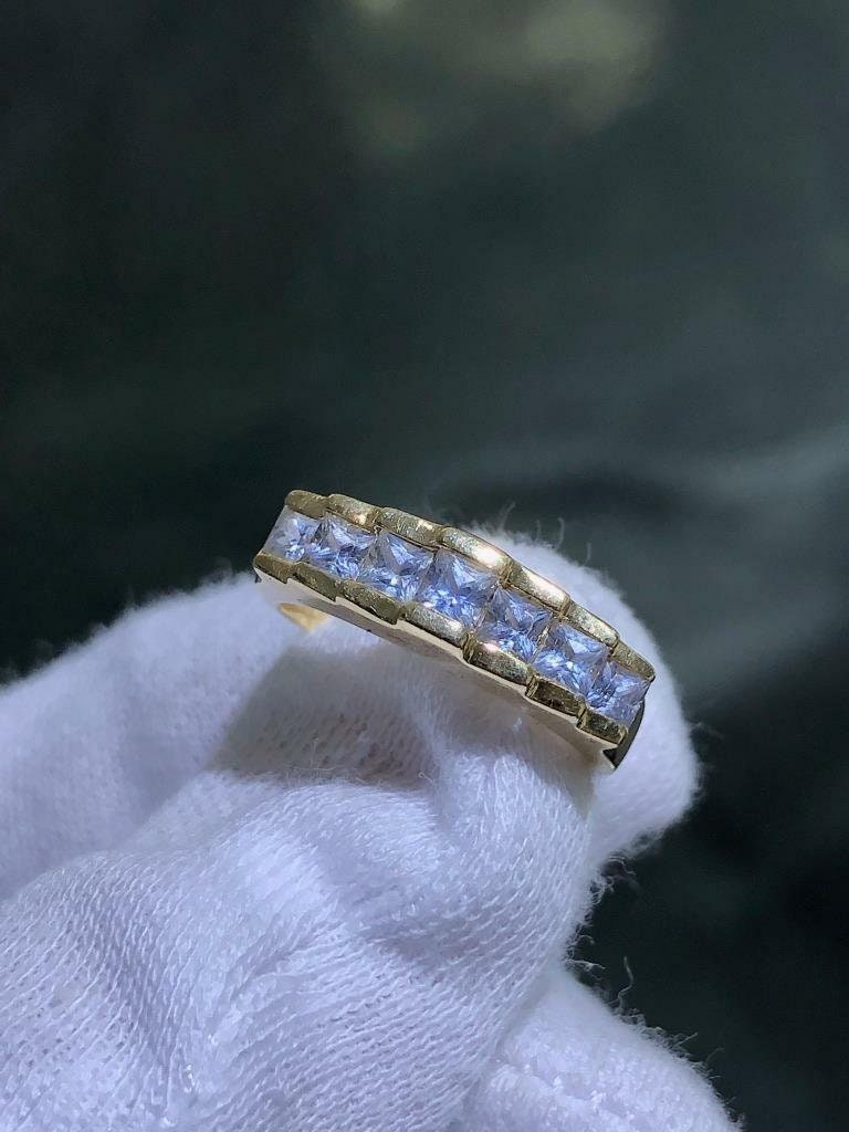 Add a pop of color to your jewelry collection with our LIV 14k Solid Yellow Gold Blue Topaz Princess Cut Ring. Featuring a unique step design band, this ring is both elegant and playful. Perfect for any occasion, this size 7 ring is a must-have accessory!